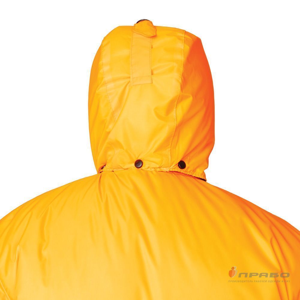 Капюшон: утепленный, съёмный на кнопках. Лицевой выреза капюшона регулируется с помощью шнура. По объёму регулируется в области затылочной части с помощью хлястиков на полукольцах. Подбородочная часть застегивается на контактную ленту.