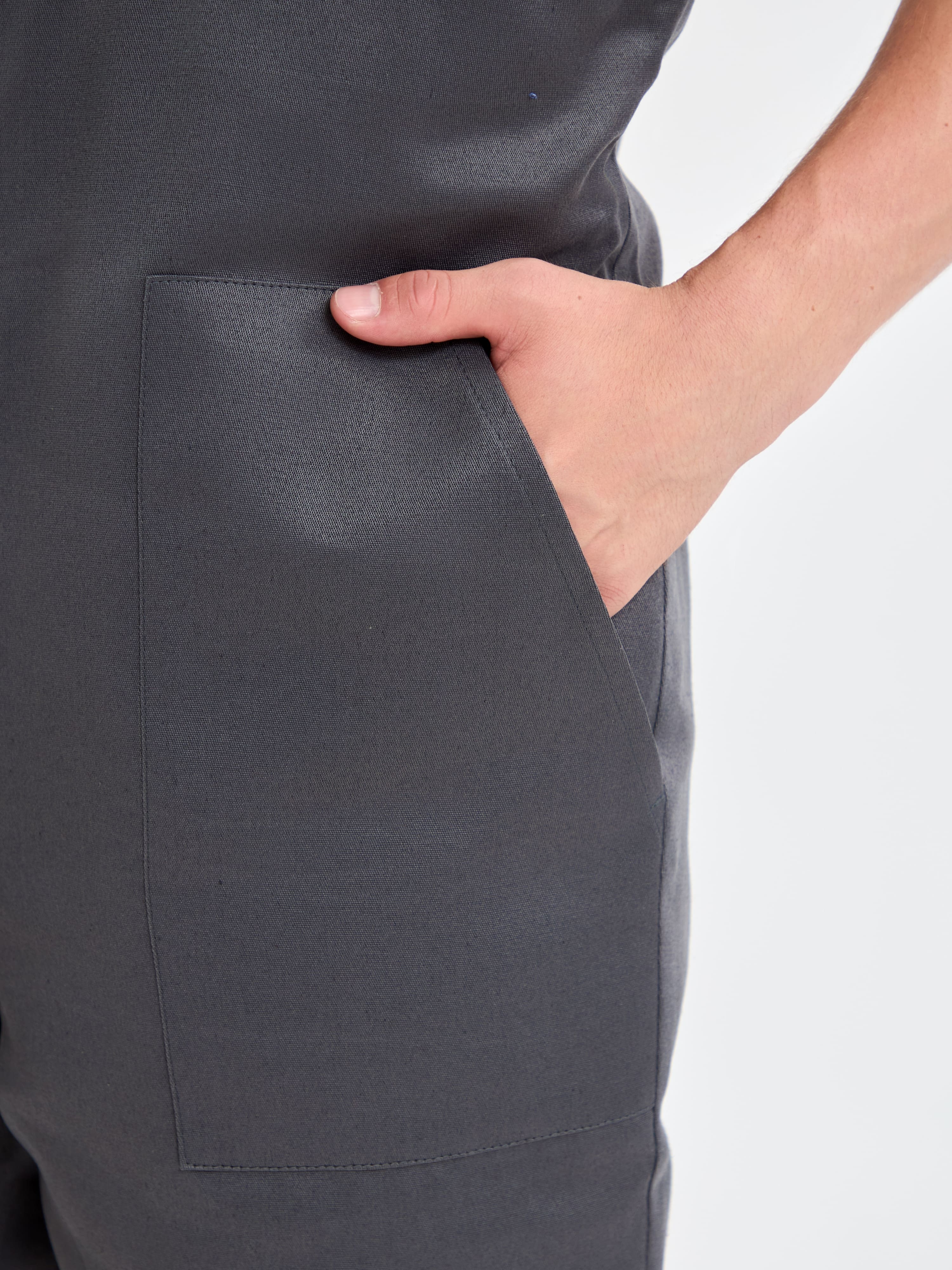 - передние половинки брюк с боковыми накладными карманами с наклонным входом