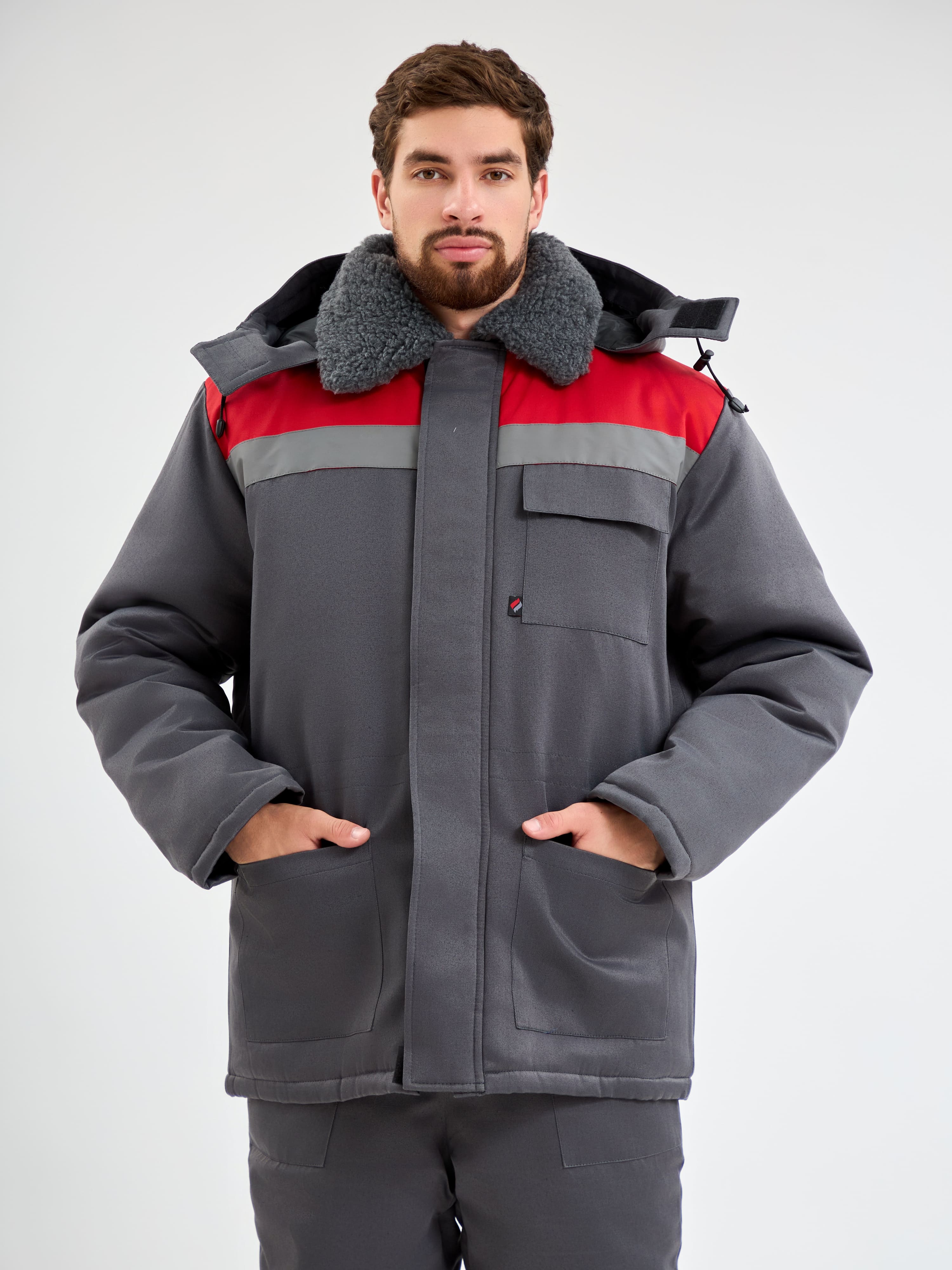 Костюм мужской утепленный "Сибер-NEW СОП" cерый/красный (куртка+п/комб.)