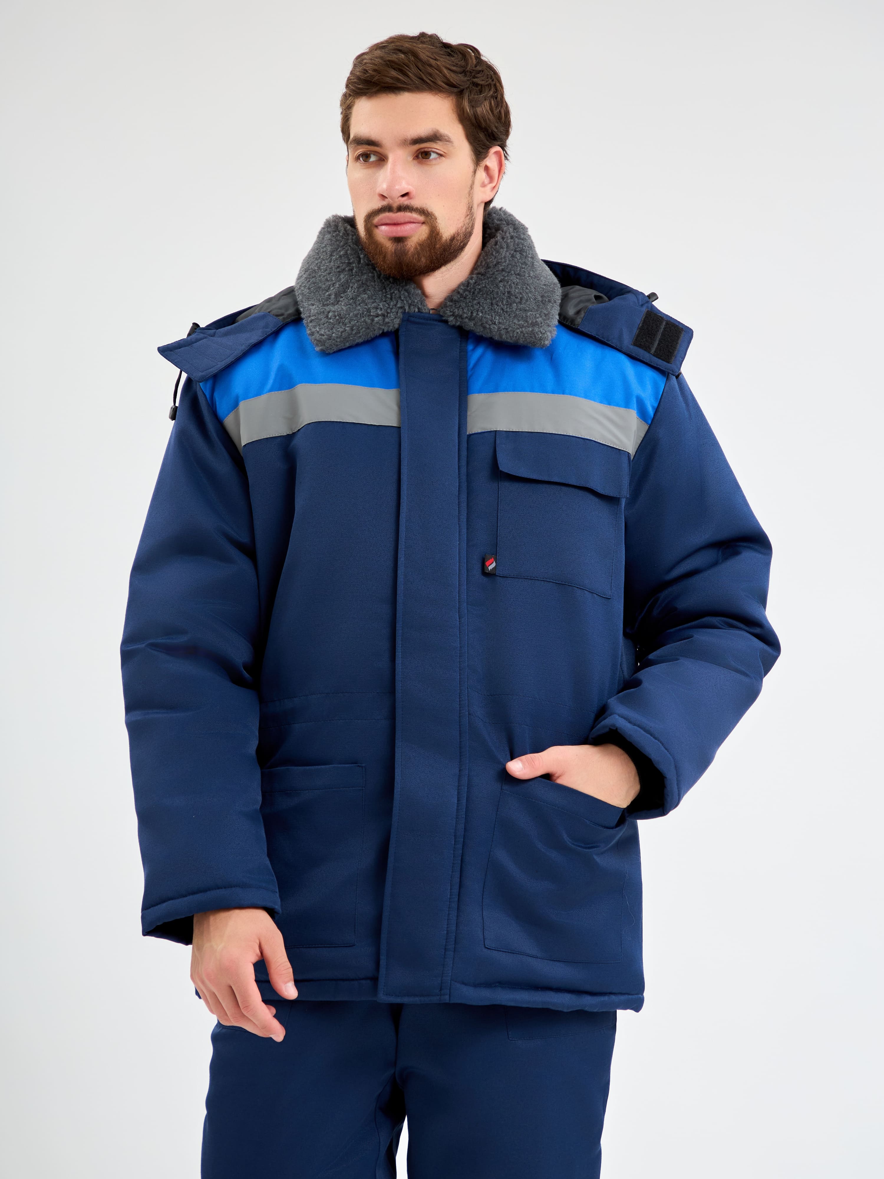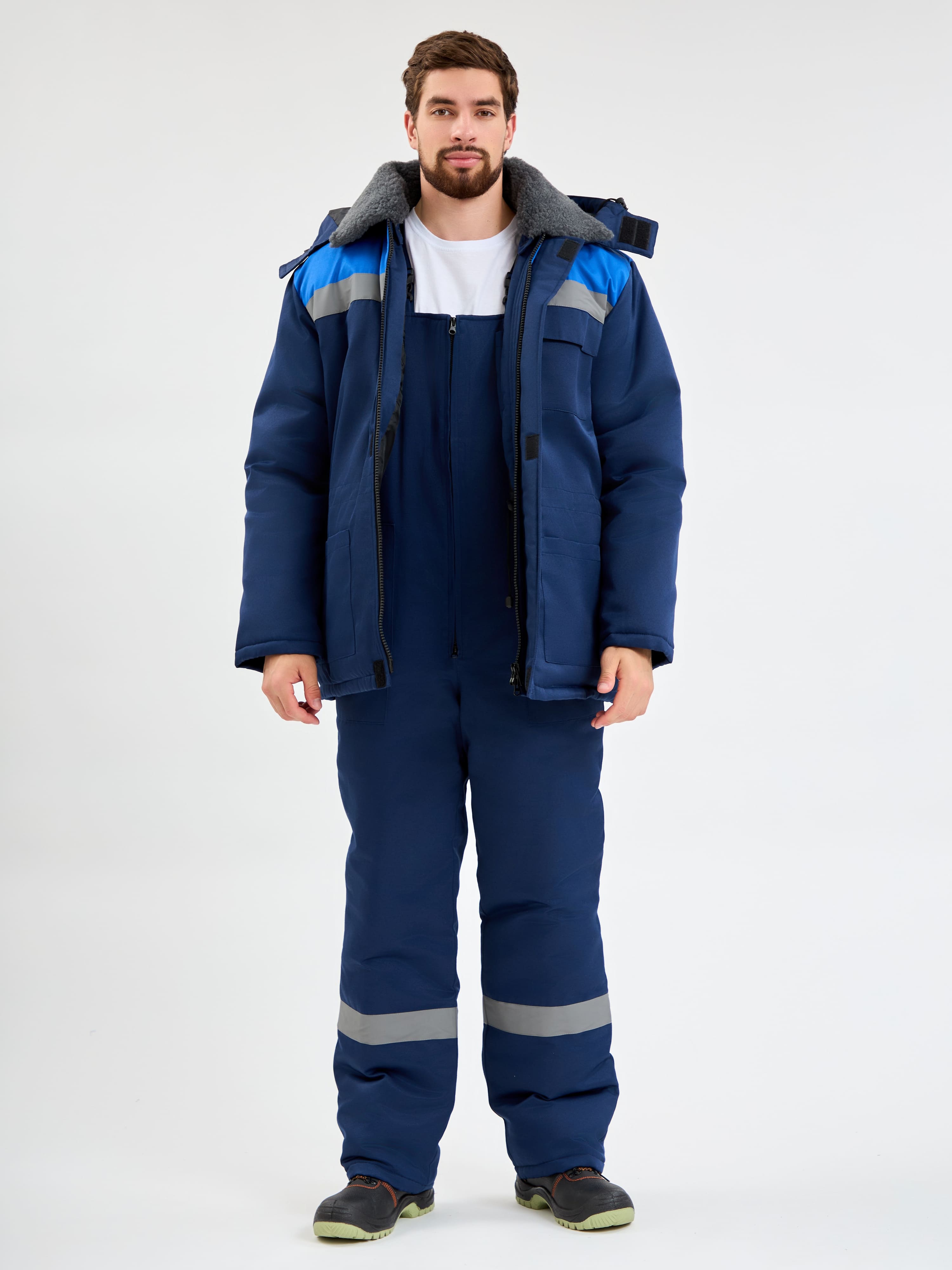 Тёплый костюм, рассчитанный на использование в зимнее время в условиях средней полосы России. Подходит для повседневной носки, устойчив к выгоранию на солнце и механическим повреждениям. В комплект входят длинная крутка, регулируемая по ширине кулисой, и полукомбинезон. На куртке и полукомбинезоне имеются широкие светоотражающие полосы, повышающие заметность рабочего в темноте. Куртка прямого покроя застёгивается на молнию и липучки. В рукава вставлены напульсники из эластичного трикотажа. Капюшон отстёгивается и регулируется по окружности с помощью стяжек. Полукомбинезон прямой, приталивается с помощью стяжки на талии. Длина лямок регулируется.