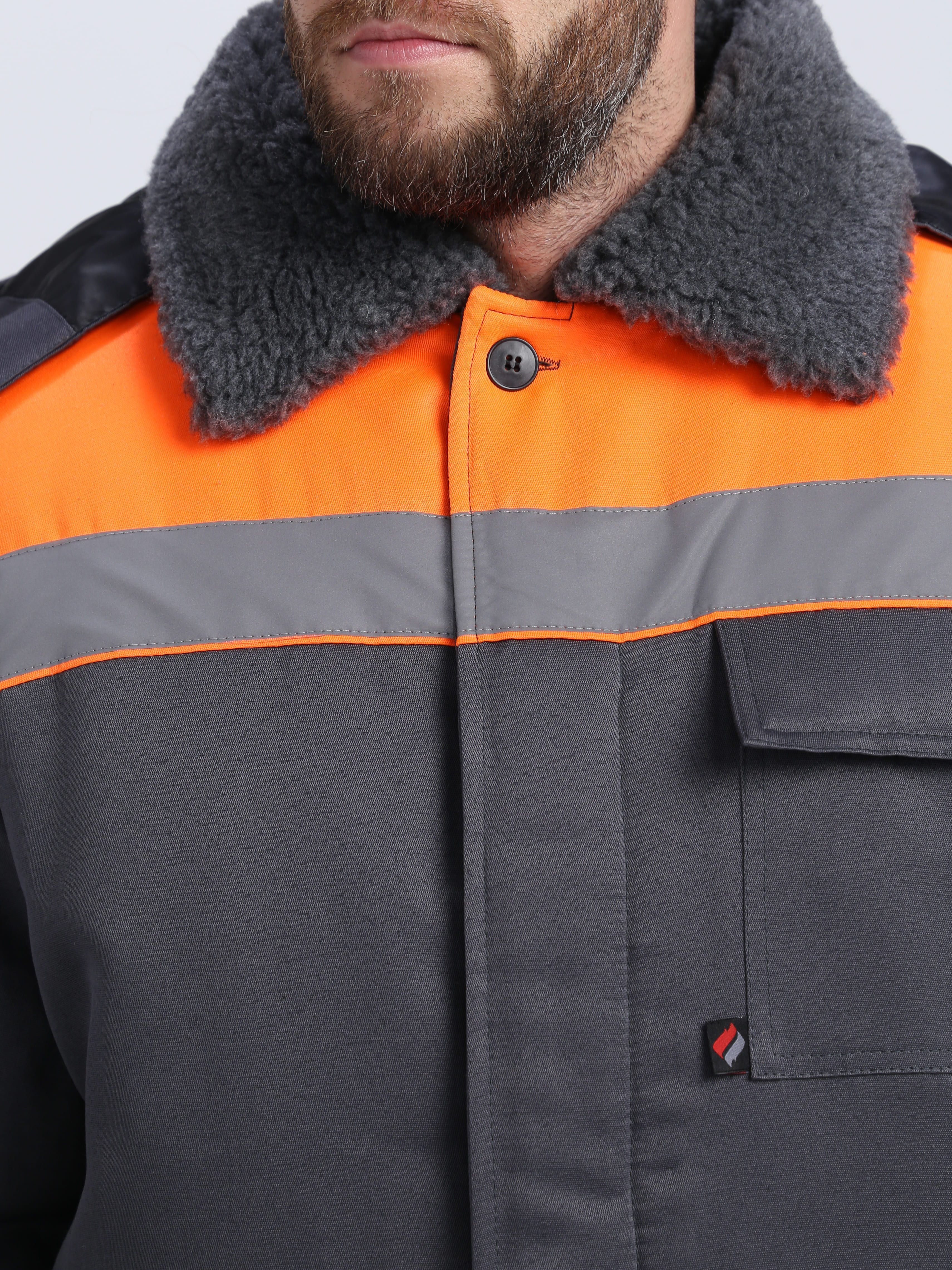 Костюм мужской утепленный "Т-Ультра" (куртка+брюки) т.серый/оранжевый с СОП, тк.Смесовая (87491234) : купить в Москве, цены в каталоге интернет-магазина «Аспект»