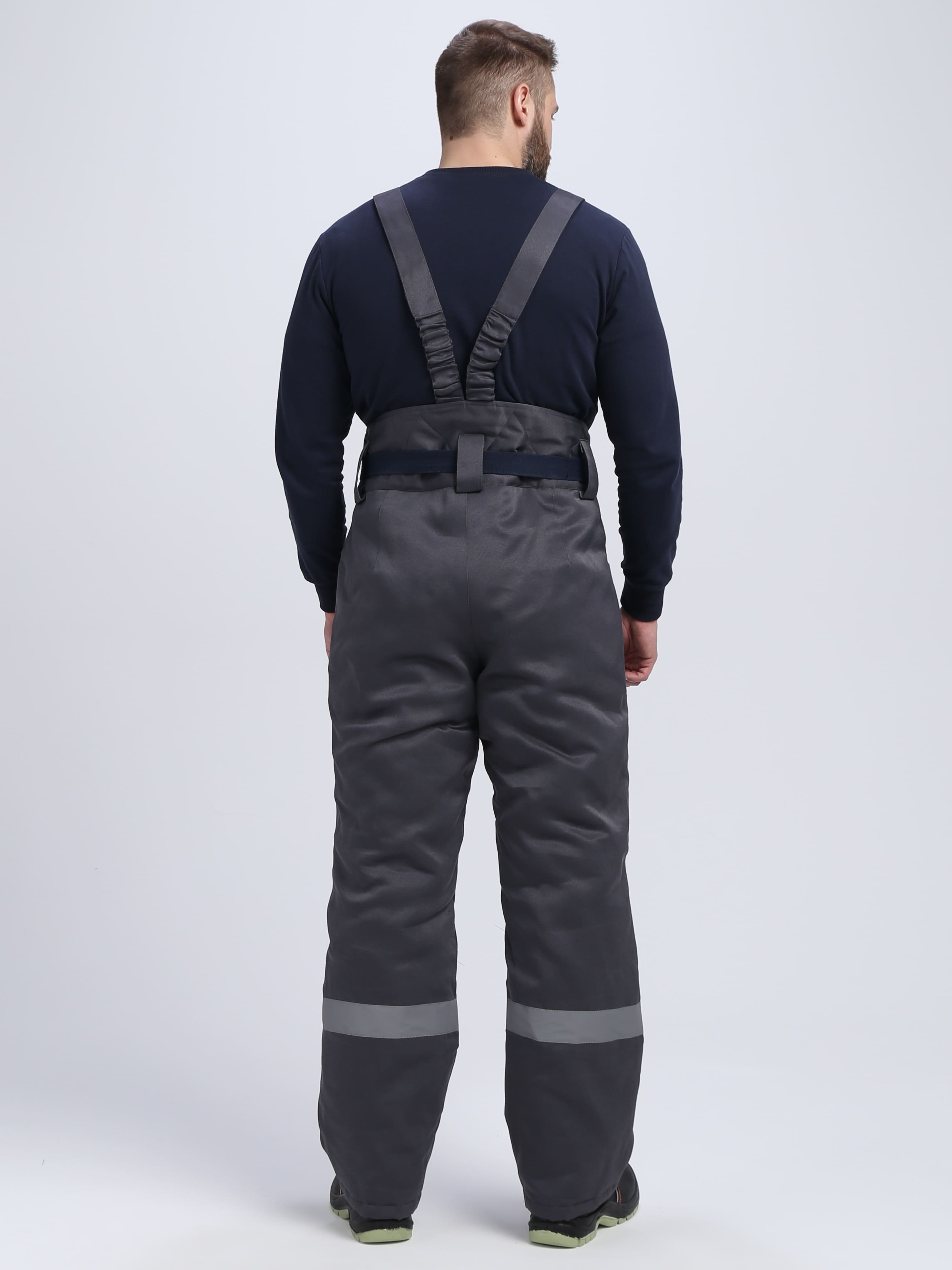 В комплект входят брюки на бретельках и удлинённая куртка с утяжками. Костюм подходит для использования на стройке, в автомастерских и на производствах в зимнее время. На груди, спине и в нижней части брюк имеются вставки из светоотражающего материала, повышающие заметность работника ночью. Воротник с отворотом, отделан мехом. При необходимости его можно поднимать для защиты шеи от ветра. Имеется капюшон с утяжками и застёжкой. На куртке предусмотрены нагрудный накладной карман под рацию и два больших кармана в нижней части. В области талии имеется утяжка. Куртка застёгивается на пуговицы.