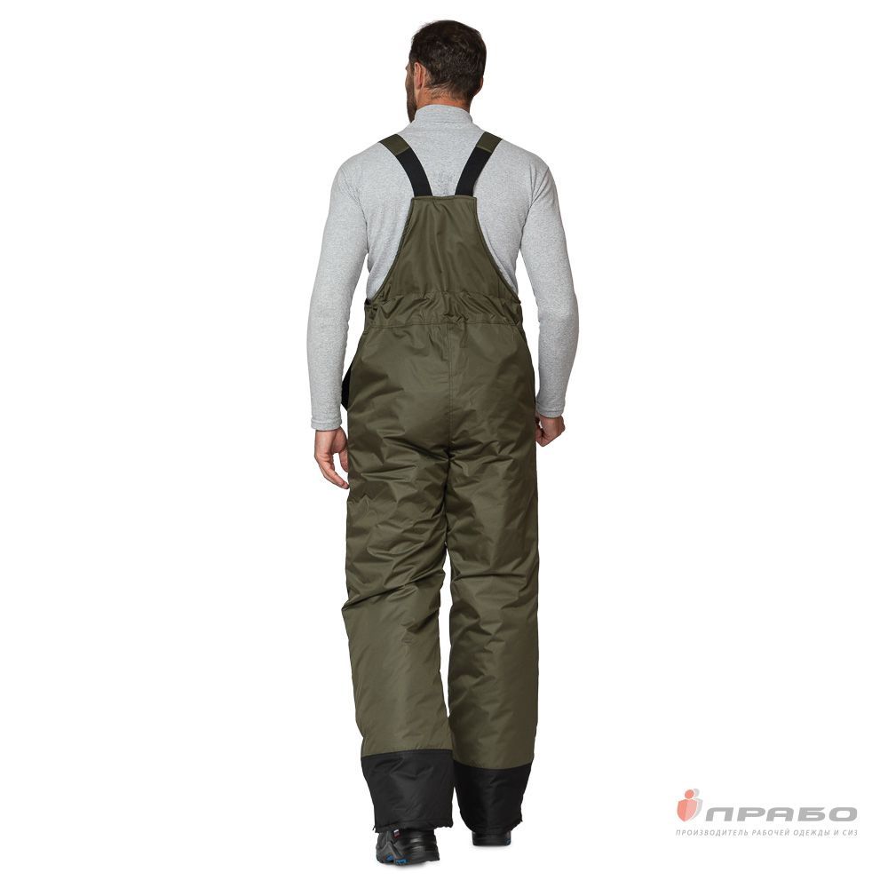 Полукомбинезон прямой, утепленный, стеганный, с притачной утеплённой подкладкой, с цельнокроеной грудкой и спинкой, с центральной застёжкой на 2-х замковую тесьму - "молнию" и ветрозащитным клапаном, с регулируемыми бретелями.