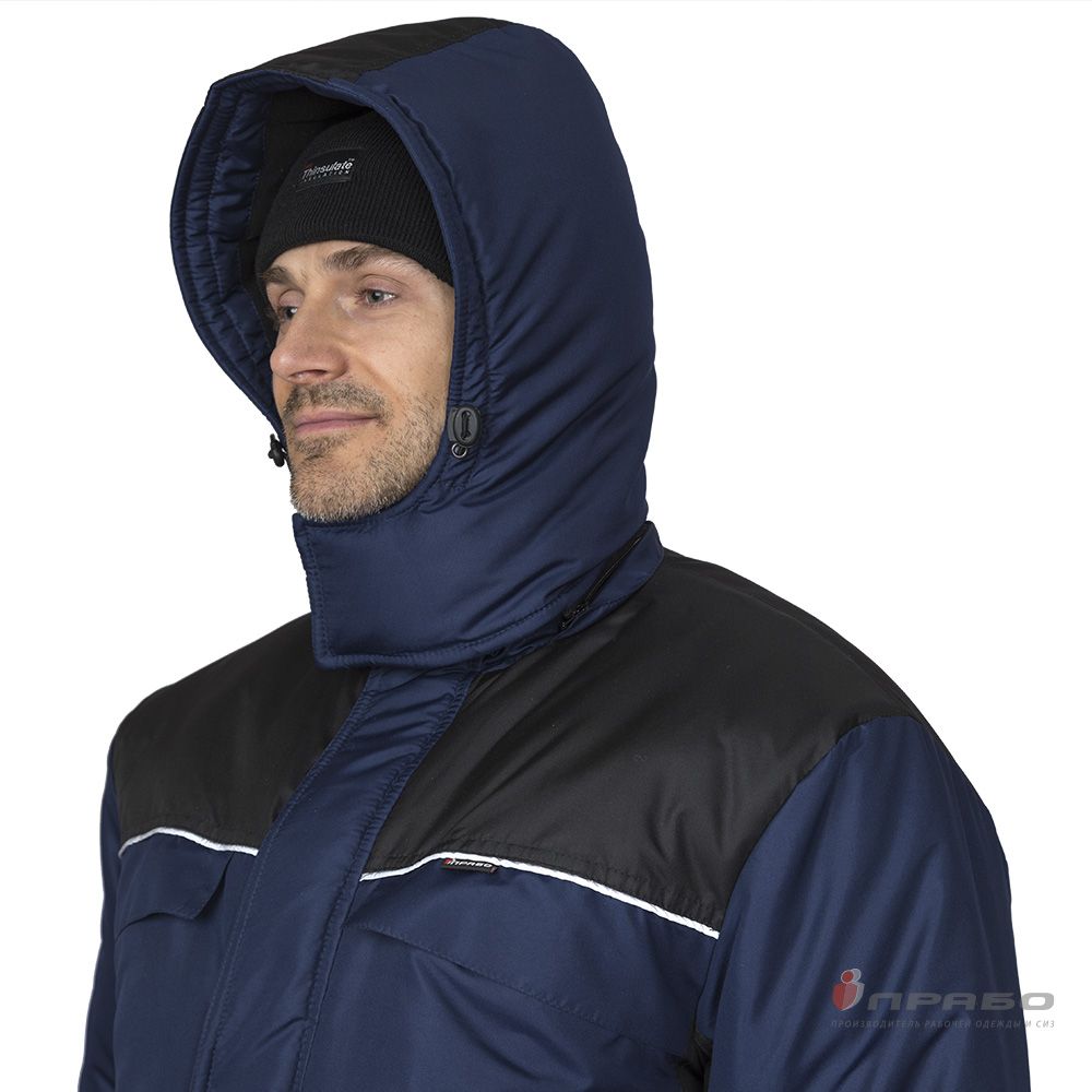Капюшон: съёмный, утеплённый на подкладке из флиса, пристёгивается к горловине на молнию. По лицевому вырезу регулируется по объёму с помощью эластичного шнура и фиксаторов. Подбородочная часть капюшона застегивается на контактную ленту.