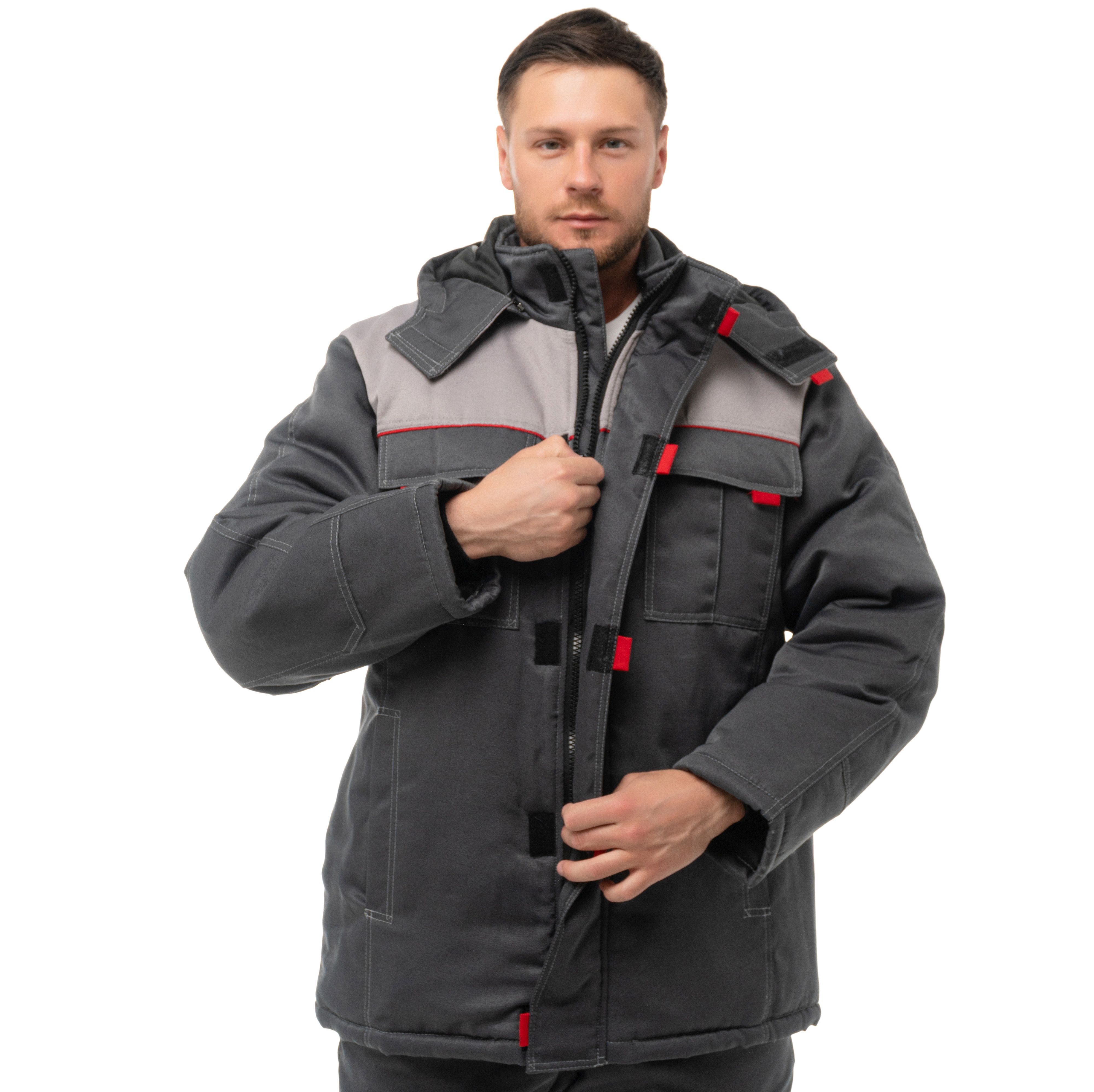 Костюм мужской утепленный "Виват-2" (куртка+п/комб.) серый/красный/черный