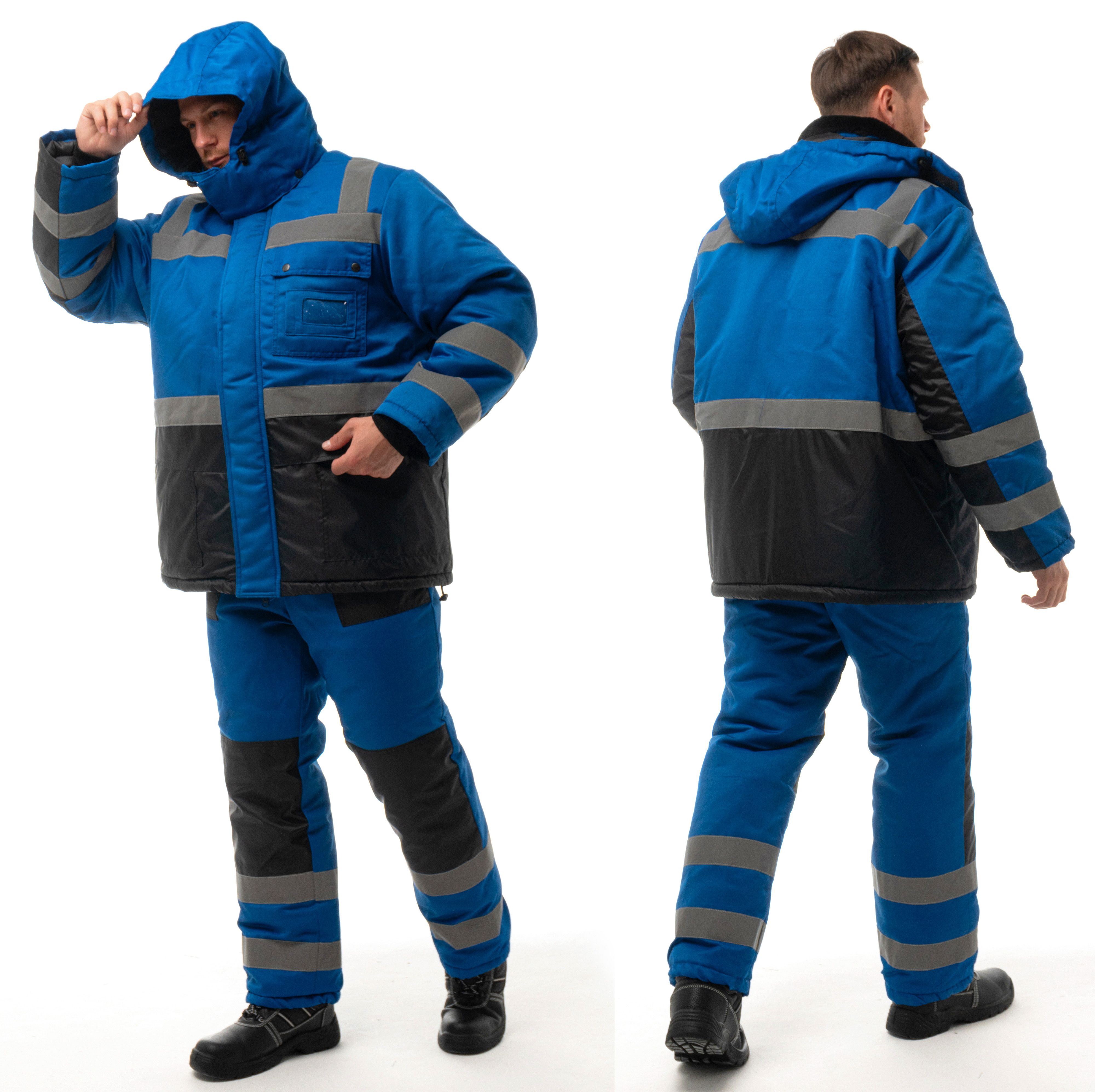 Комплект состоит из тёплой куртки и полукомбинезона. Костюм рассчитан на эксплуатацию в морозы на открытом воздухе и в неотапливаемых помещениях. Ткань устойчива к механическим воздействиям. Куртка отличается удлинённым кроем, хорошо защищает поясницу от продувания. Застёгивается на молнию с удобным большим язычком. Центральная застёжка защищена накладным ветрозащитным клапаном. В верхней части расположены косые врезные карманы. В нижней – вместительные накладные с клапаном на кнопках. Полукомбинезон оснащён эластичной вставкой в талии. Лямки регулируются пряжками по длине.