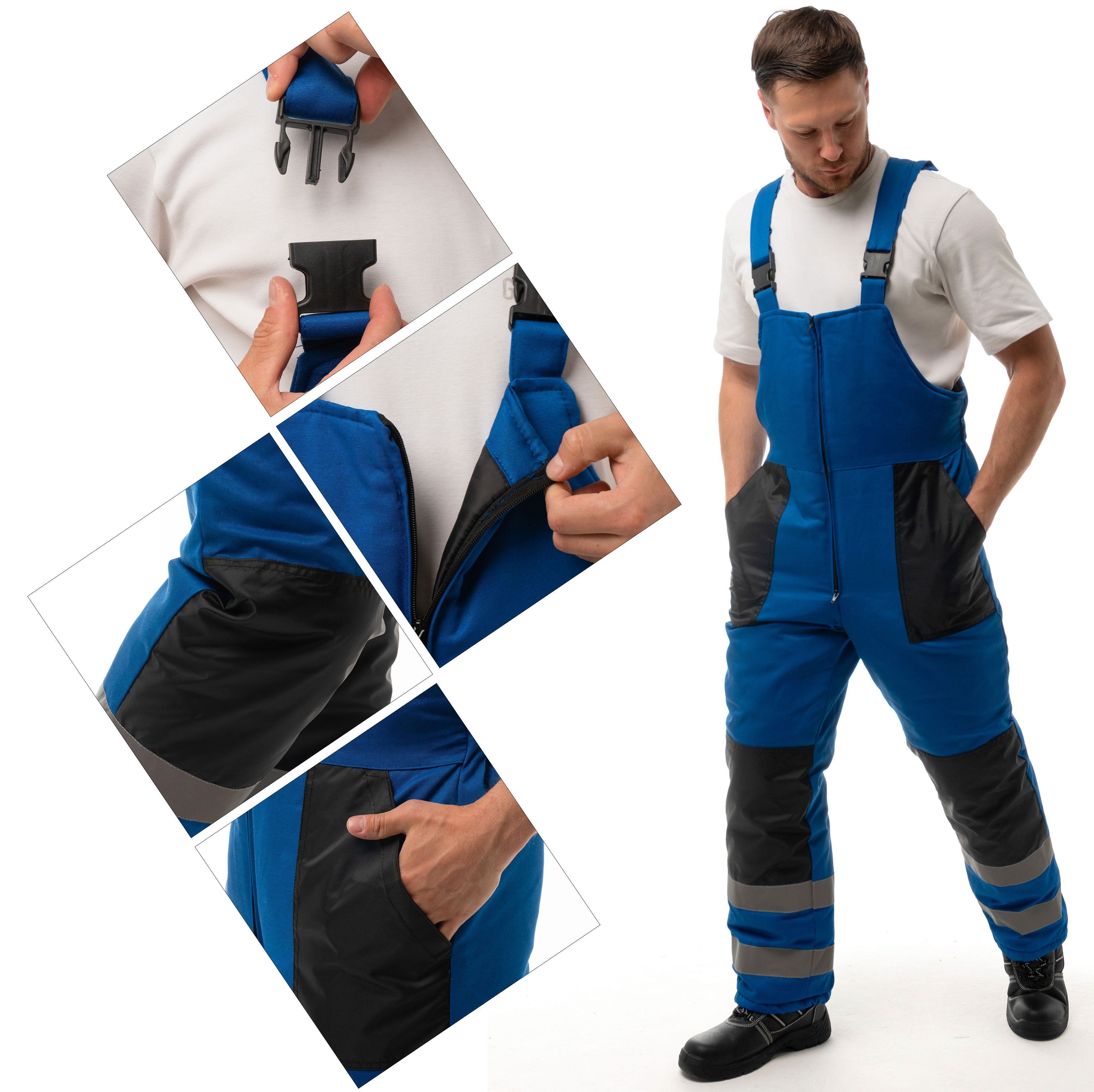 Полукомбинезон с центральной застежкой на двухзамковую молнию и регулируемыми по длине бретелями на резинках обеспечивает комфорт и удобную посадку. Светоотражающие полосы на рукавах, груди, спине и по низу брючин повышают видимость в условиях низкой освещенности, гарантируя безопасность. Регулируемая по талии кулиса с резинкой-шнуром и фиксаторами делает комплект еще более функциональным.