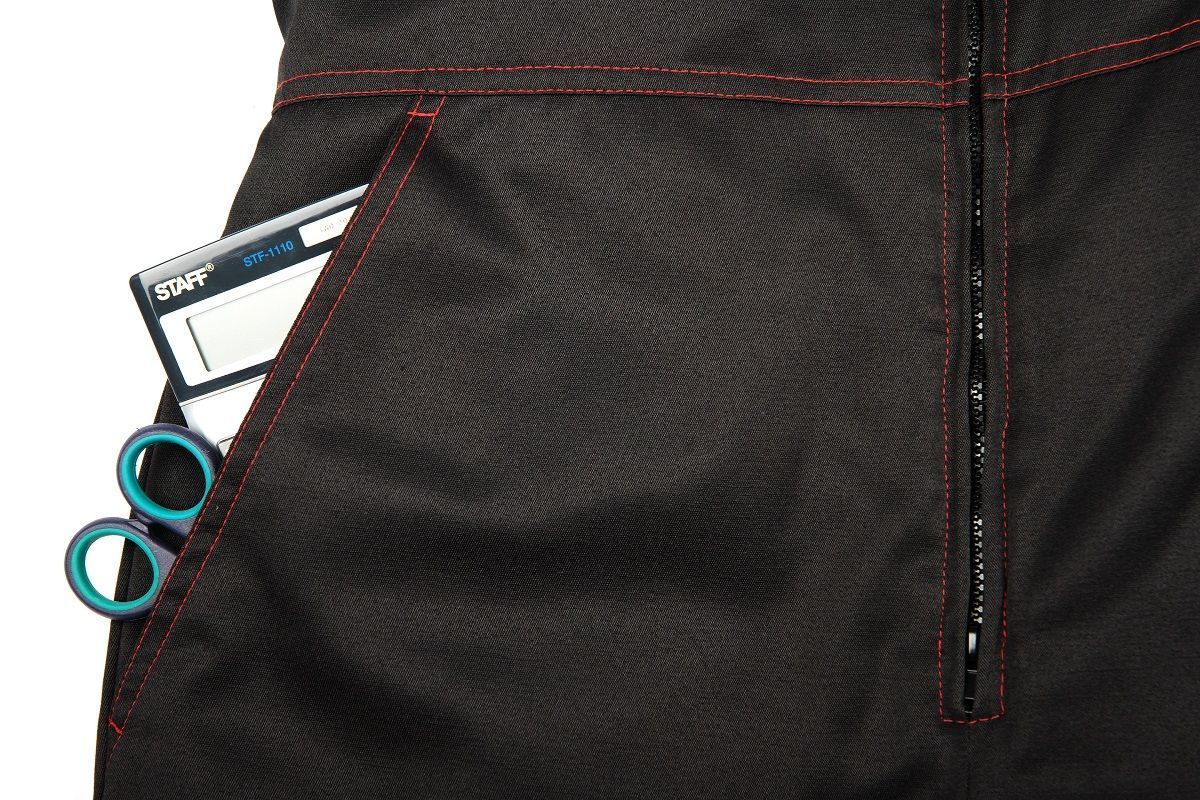 на правую заднюю часть полукомбинезона настрочен накладной карман со скошенными углами