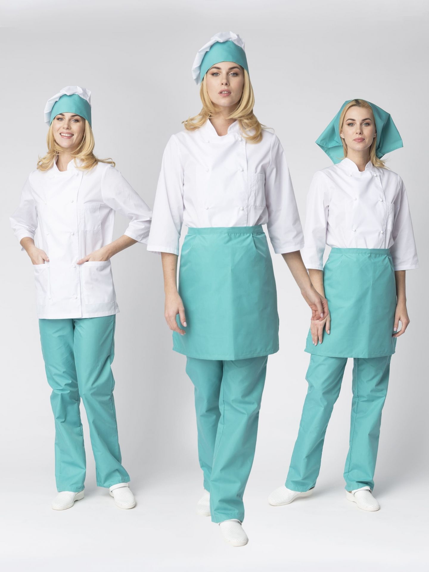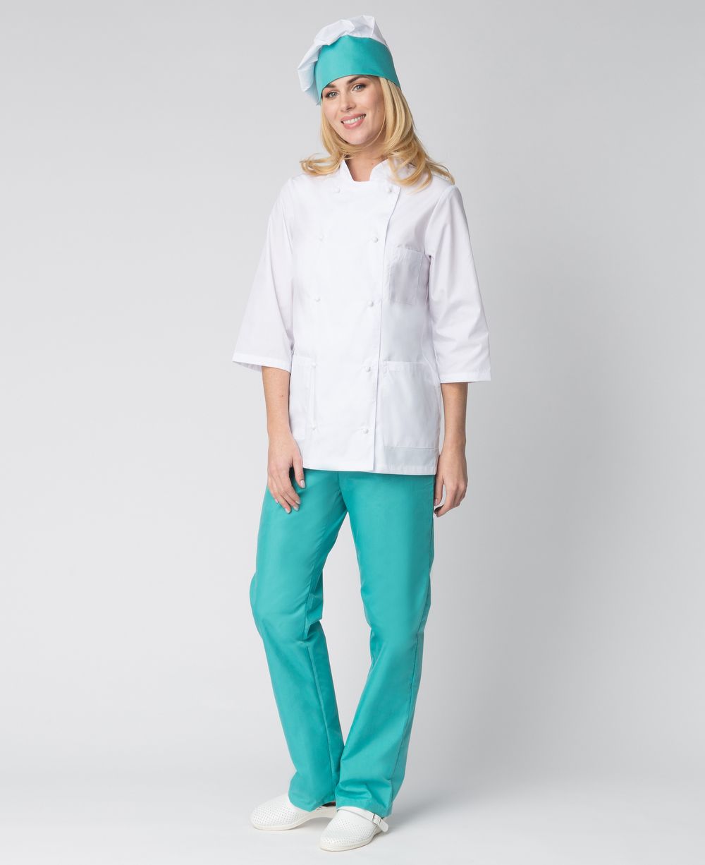 Костюм повара женский "Шеф" белый/бирюзовый (ЧЗ) (50803000) : купить в Москве, цены в каталоге интернет-магазина «Аспект»