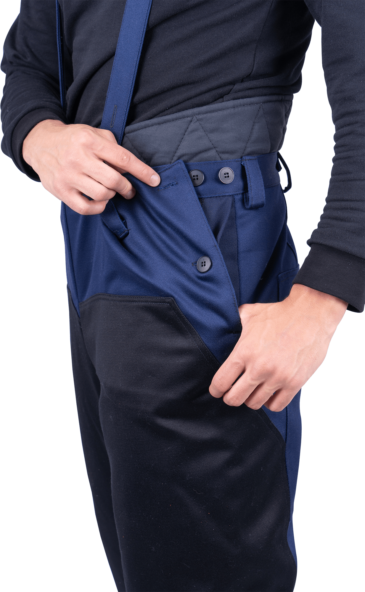 - передние половинки брюк с боковыми накладными карманами