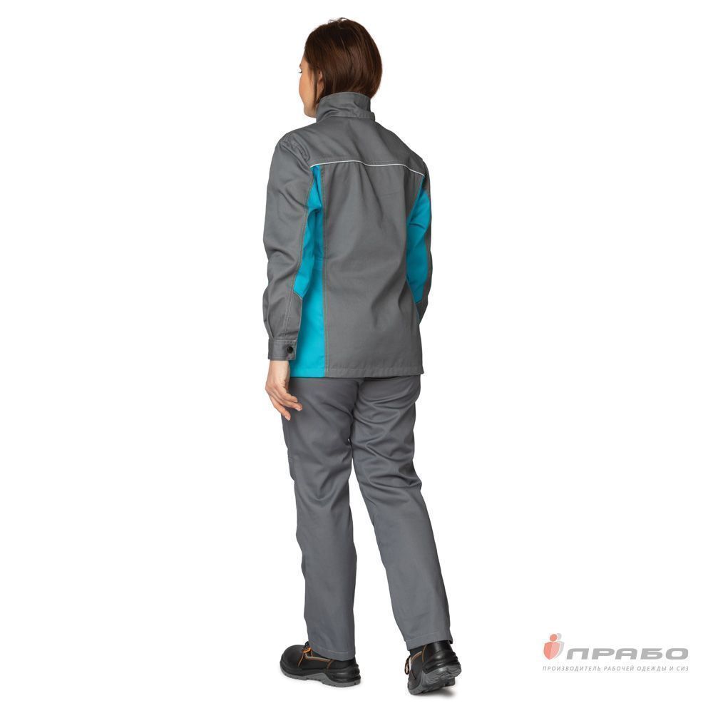 Костюм женский летний "Бренд 1" (куртка удлиненная+брюки) серый/бирюза (ЧЗ) (Кос10072) : купить в Москве, цены в каталоге интернет-магазина «Аспект»