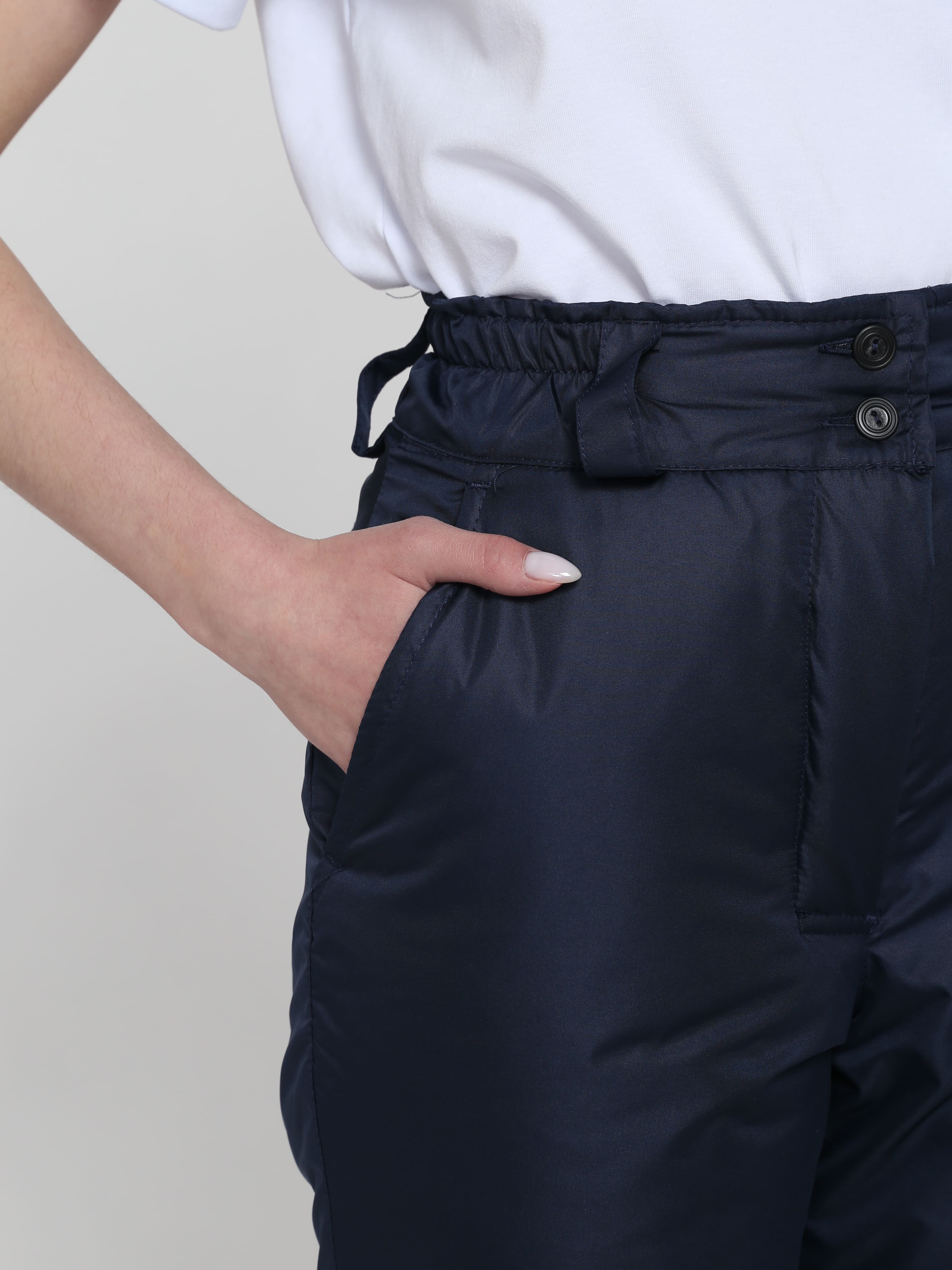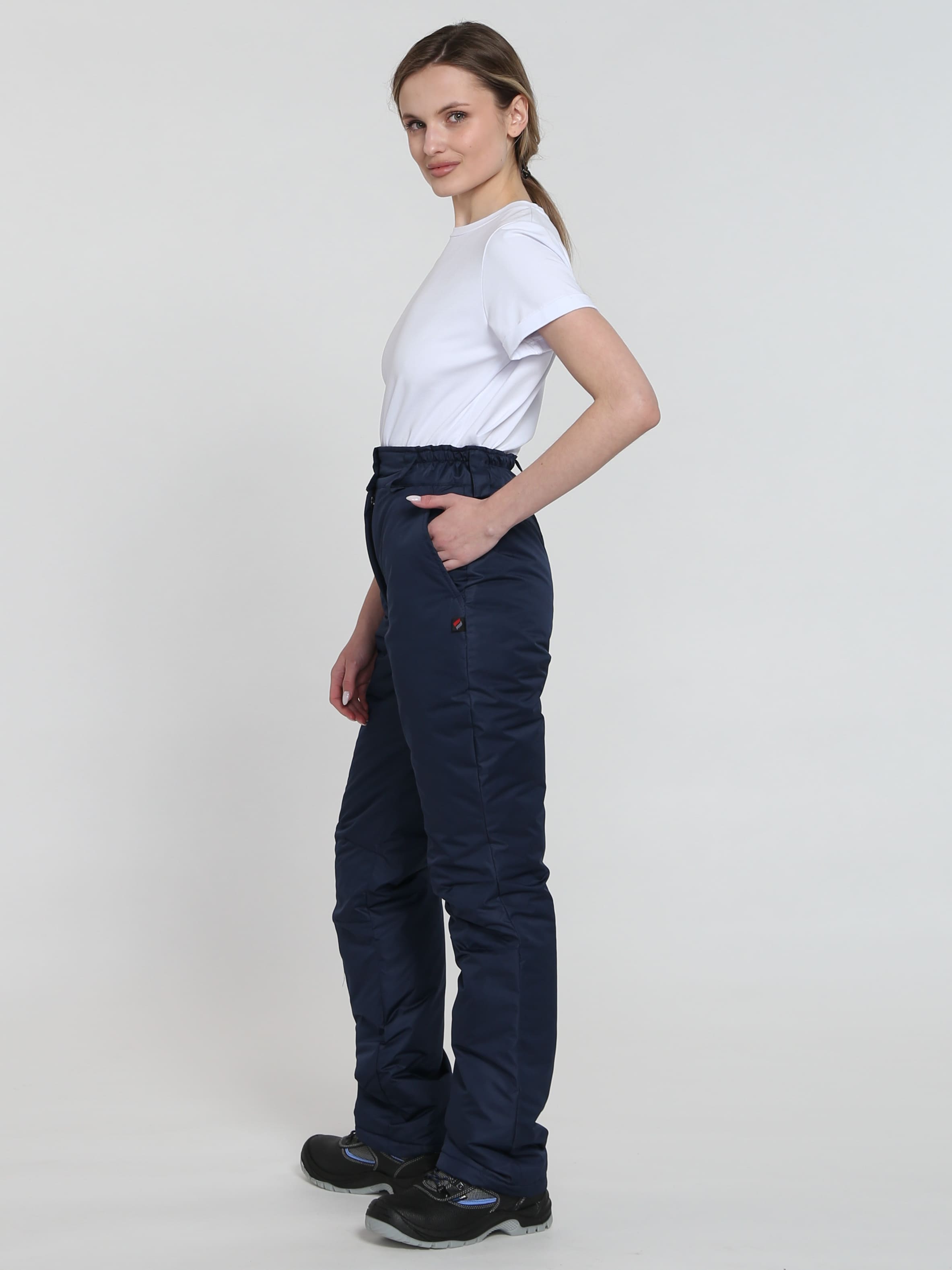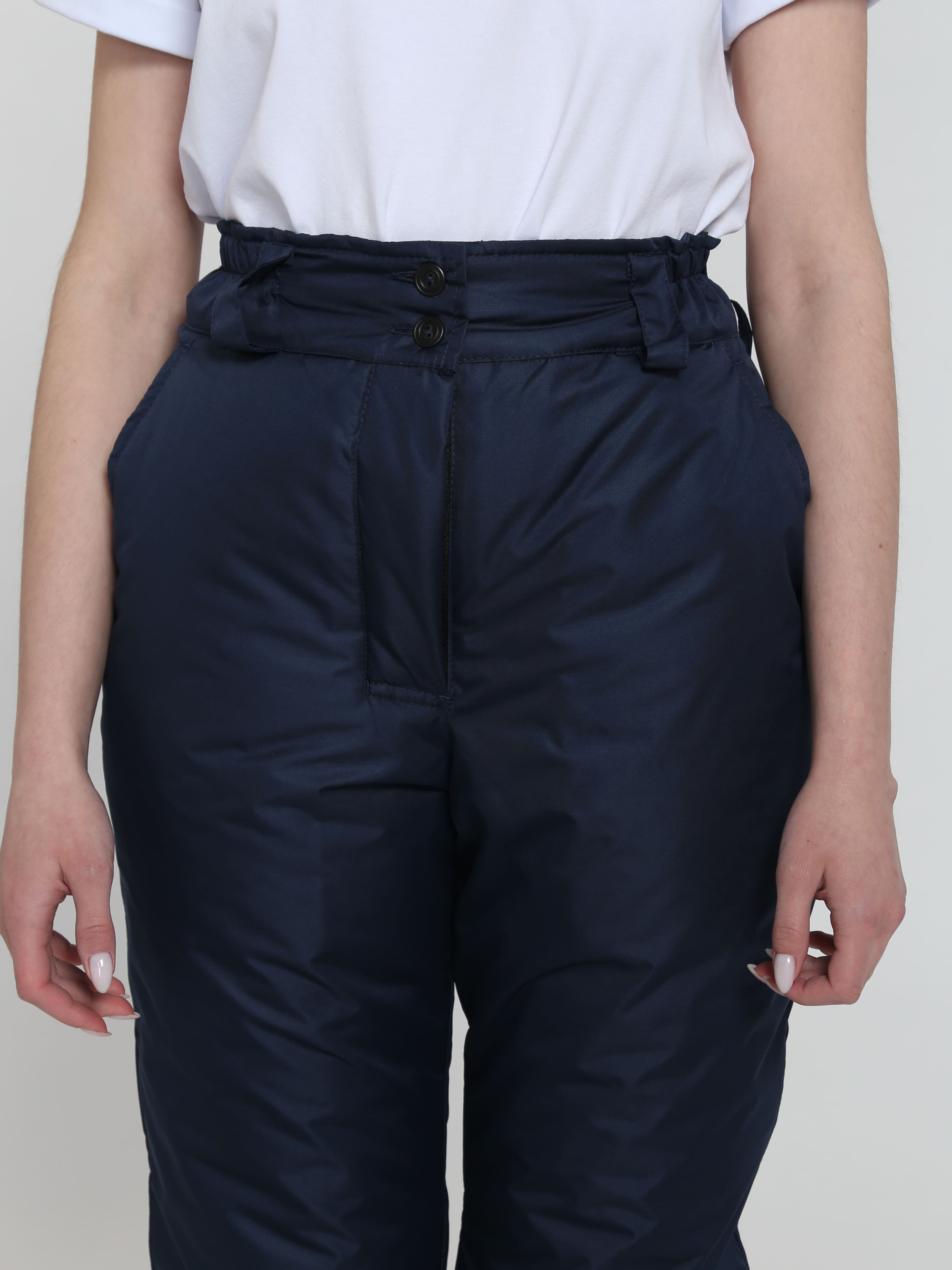 Брюки женские зимние «Сакрин» подходят для рабочей деятельности и повседневной носки при низких температурах до -25 ℃. Зимние брюки производятся из плотной ткани «таслан», отличаются легкостью, прочностью и длительным периодом эксплуатации. Мембранное покрытие водонепроницаемостью 8000 мм и влагоотталкивающая пропитка не дают промокнуть даже в сильный снегопад или дождь, отлично защищают от загрязнений. Высокий пояс брюк закрывает спину от сквозняков и препятствует переохлаждению поясничного отдела позвоночника, а утеплитель синтепон замечательно сохраняет тепло. Зимние штаны женские дополнены вытачками на коленях и в области талии, благодаря чему не стесняют движения. Пояс брюк регулируется по объему с помощью пат на пуговицах и обеспечивает комфортную посадку по фигуре. Для хранения личных вещей предусмотрены передние боковые карманы.