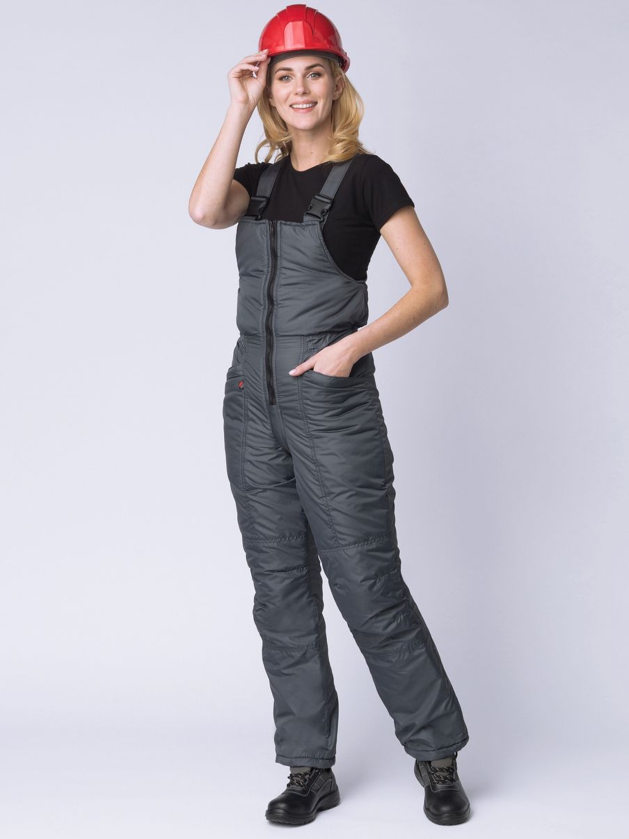В комплект входят брюки на бретельках и удлинённая куртка с утяжками. Костюм подходит для использования на стройке, в автомастерских и на производствах в зимнее время. На груди, спине и в нижней части брюк имеются вставки из светоотражающего материала, повышающие заметность работника ночью. Воротник с отворотом, отделан мехом. При необходимости его можно поднимать для защиты шеи от ветра. Имеется капюшон с утяжками и застёжкой. На куртке предусмотрены нагрудный накладной карман под рацию и два больших кармана в нижней части. В области талии имеется утяжка. Куртка застёгивается на пуговицы.