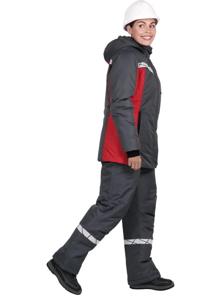 Костюм женский зимний рабочий "Вираж НЕО" (куртка, брюки) темно-серый/красный (Кос225-221) : купить в Москве, цены в каталоге интернет-магазина «Аспект»