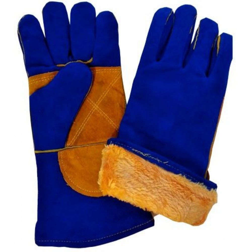 Краги спилковые утепленные "Blue Welder" усилен. ладонь, швы прошиты Кевлар. Нитью, мех мутон