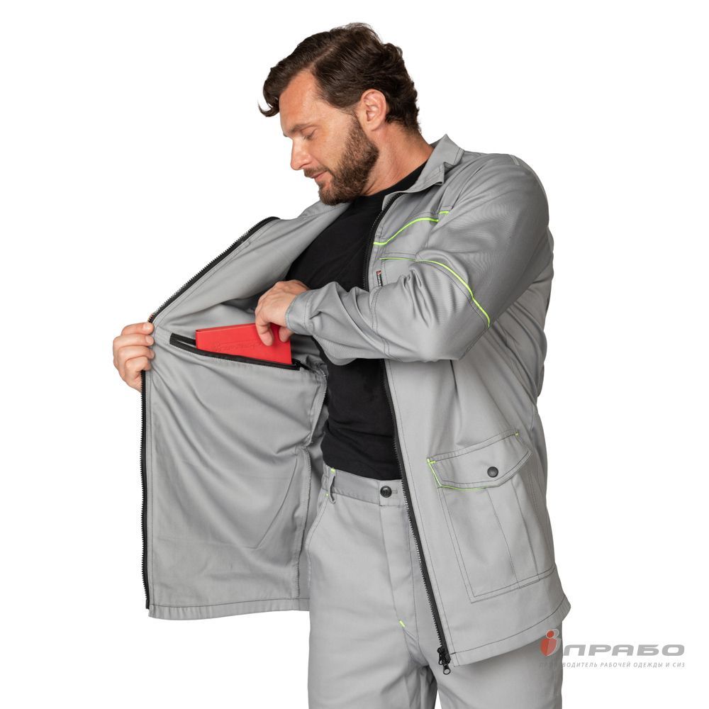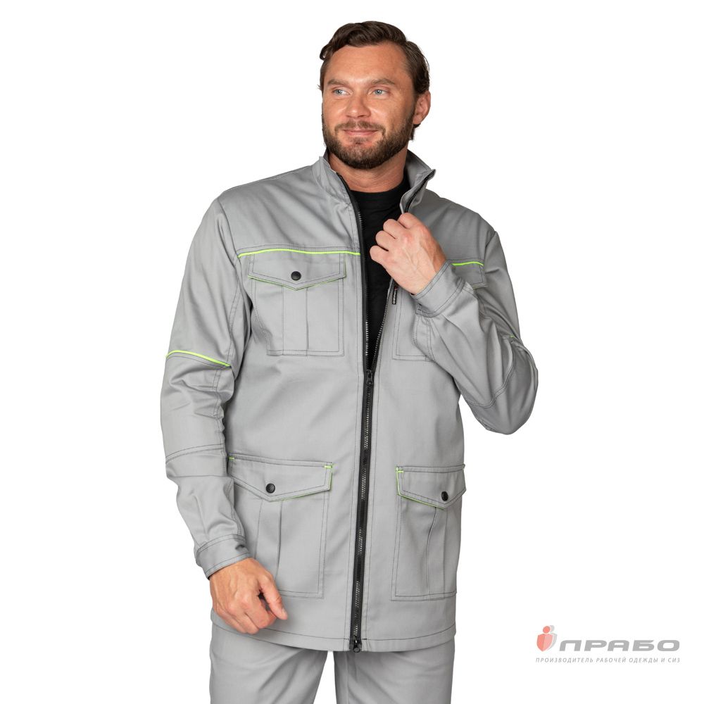 Куртка мужская летняя "Эко-Босс" св.серая/лимонная (ЧЗ)