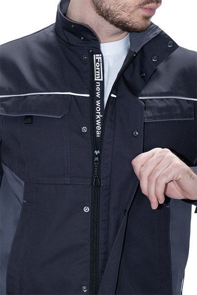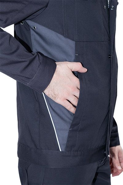 • световозвращающая двухсторонняя лента в виде канта по кокеткам полочек, по наклонным боковым вставкам куртки, по центральной части спинки вдоль пояса обеспечат видимость работника при плохом освещении и в темное время суток