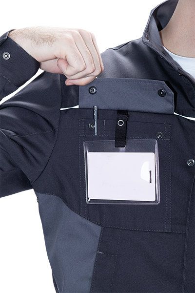 • в правом нагрудном кармане под клапаном петля на кнопке для крепления бейджа