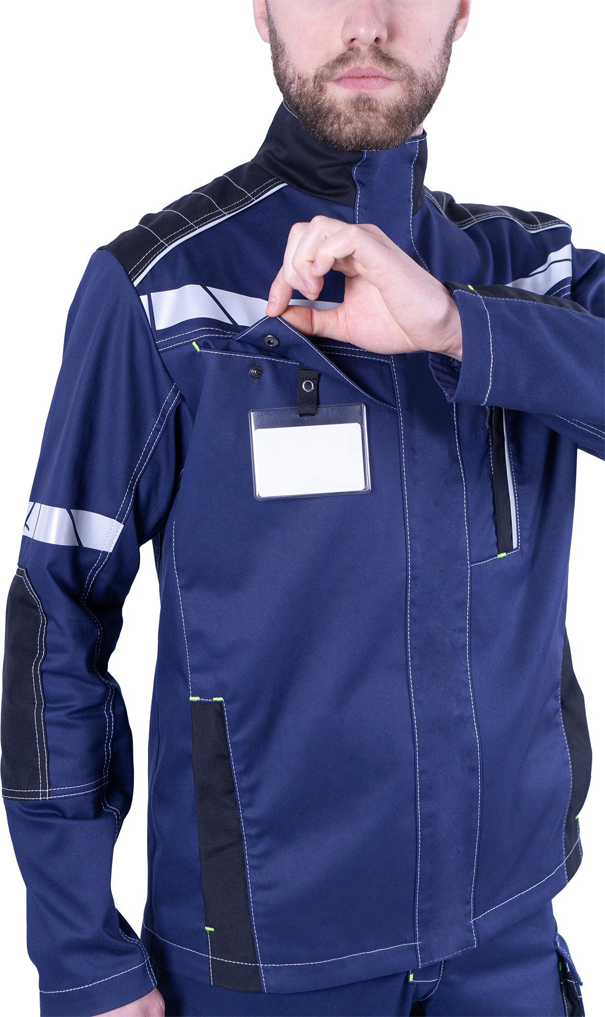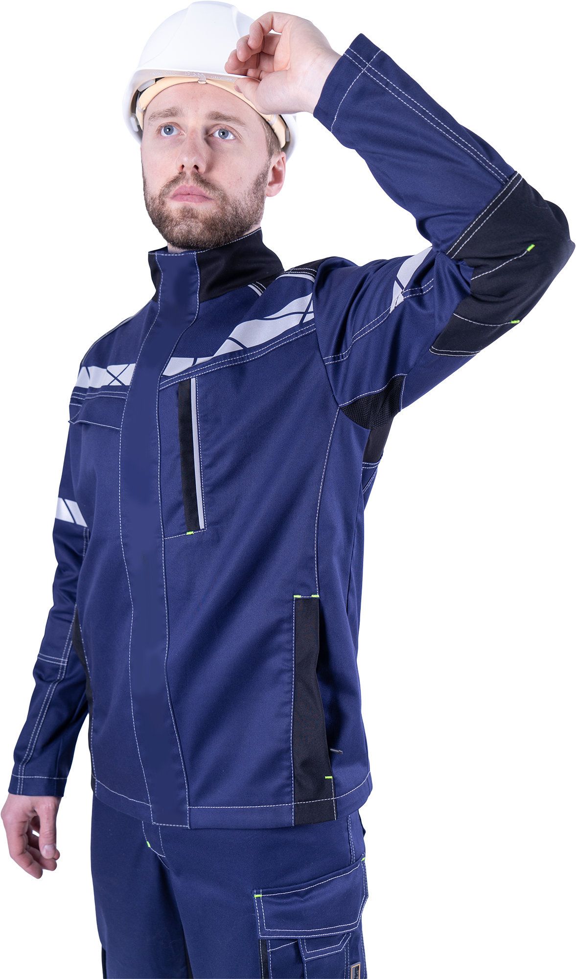 • Рукава соответствуют естественному положению рук при работе. В области налокотников предусмотрены вытачки из износостойкой ткани (100% полиамид 6.6).