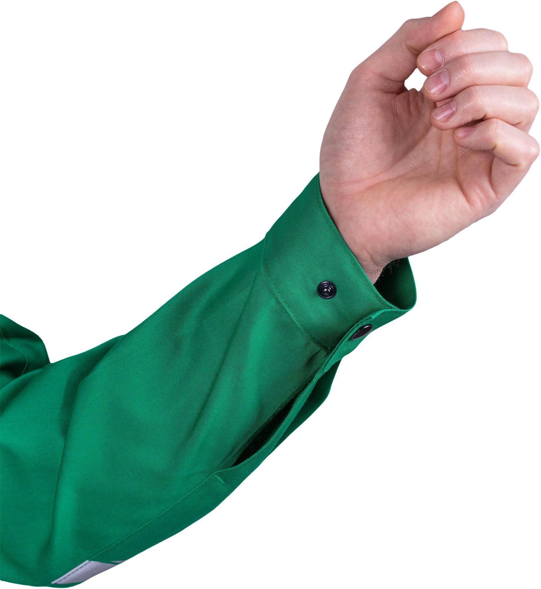 • рукава с локтевыми швами, с манжетами с застёжкой на кнопку с возможностью регулирования объема