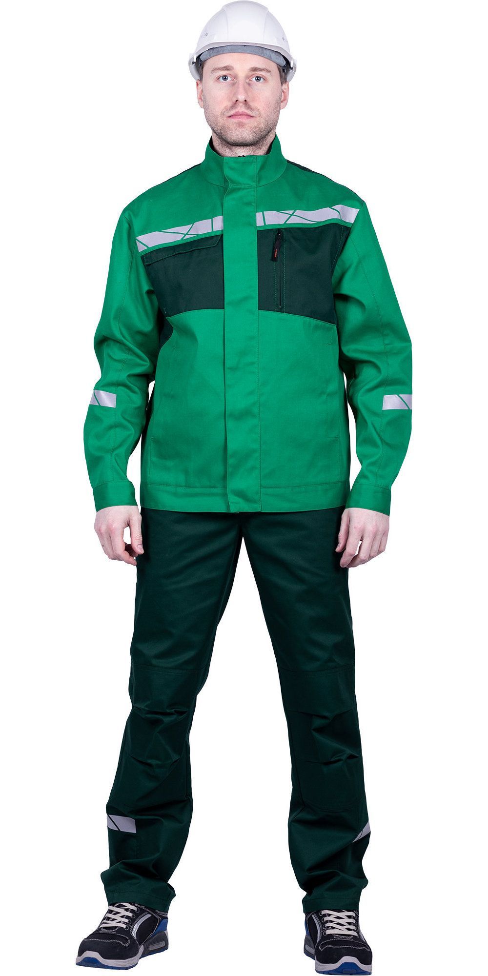 В нашем интернет-магазине "Аспект" представлен костюм, который сочетает в себе стиль, надежность и высокую функциональность. Этот комплект состоит из элегантной куртки и брюк, выполненных в современном темно-зеленом цвете с утонченными лаймовыми акцентами, которые придают образу свежесть и оригинальность.
