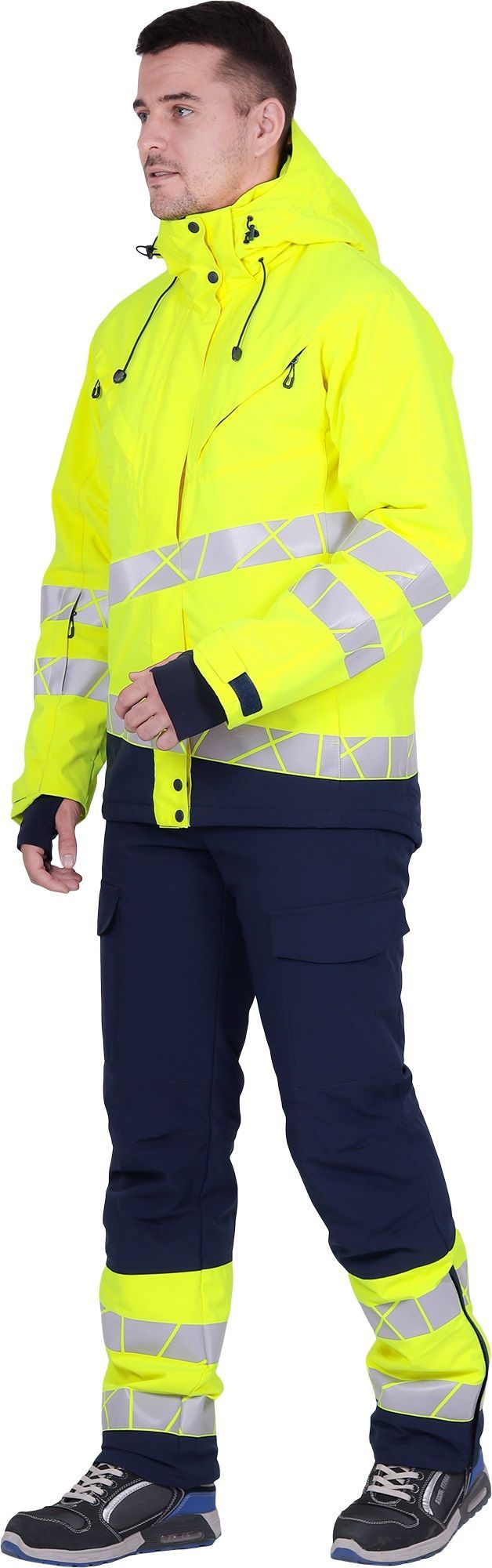 Изделия в комплекте Куртка мужская утепленная Active с Брюками мужскими утепленными Active соответствуют 3 классу сигнальной одежды повышенной видимости.