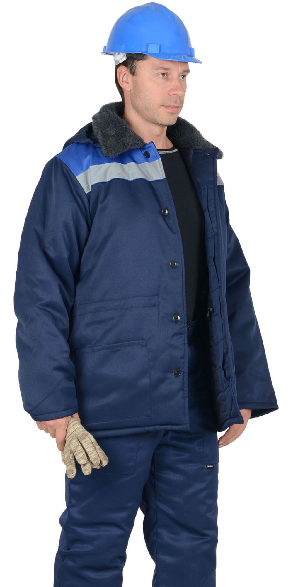 Ткань: смесовая, 65% ПЭ, 35% ХБ, плотность 215 г/кв.м, световозвращающий материал 50 мм, утеплитель синтепон 150 гр/м.кв