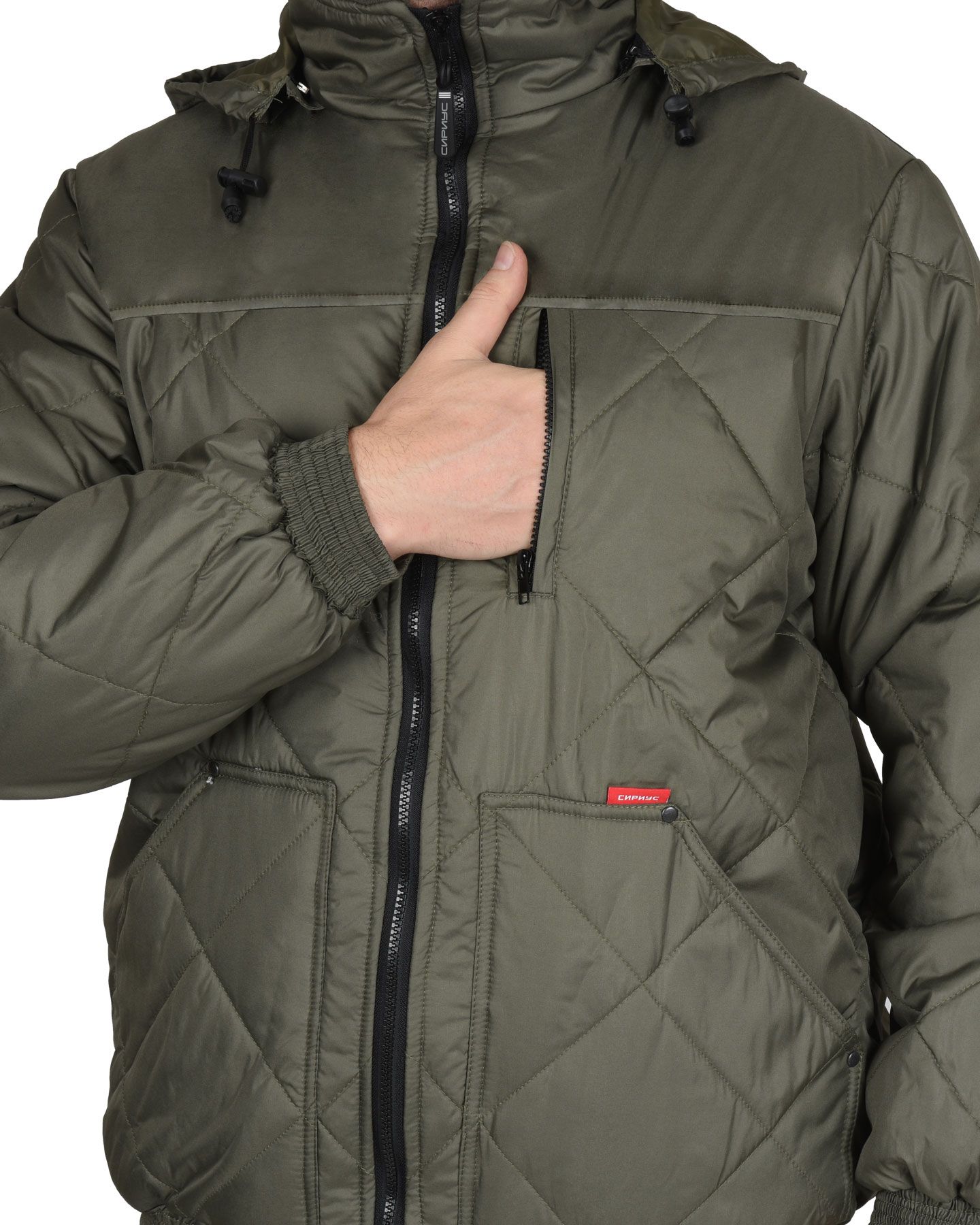 Куртка мужская утепленная "Прага-Люкс" короткая с капюшоном, оливковый (ЧЗ)