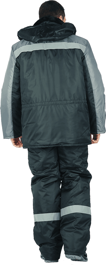 Тёплый костюм с короткой курткой и комбинезоном. Штанины полукомбинезона утягиваются по низу, бретельки регулируются с помощью пряжек по длине. В качестве застёжек используется молния, на бретельках комбинезона – пряжки-трезубцы. Куртка короткого кроя с эластичной юбкой в нижней части, предотвращающей продувание. В рукавах вставлены манжеты. На рукаве имеется накладной карман под телефон. Капюшон отстёгивается, регулируется по высоте. Застёжка крутки – молния-тесьма под ветрозащитным клапаном. Клапан фиксируется с помощью кнопок по всей длине. Воротник-стойка защищает шею от ветра.