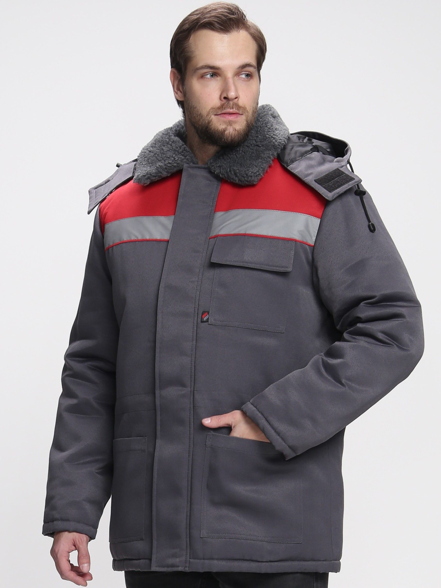 Куртка мужская зимняя для бригадира NEW, т.серый/красный, тк.Смесовая,210 (ЧЗ) (87466431) : купить в Москве, цены в каталоге интернет-магазина «Аспект»
