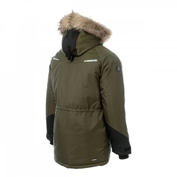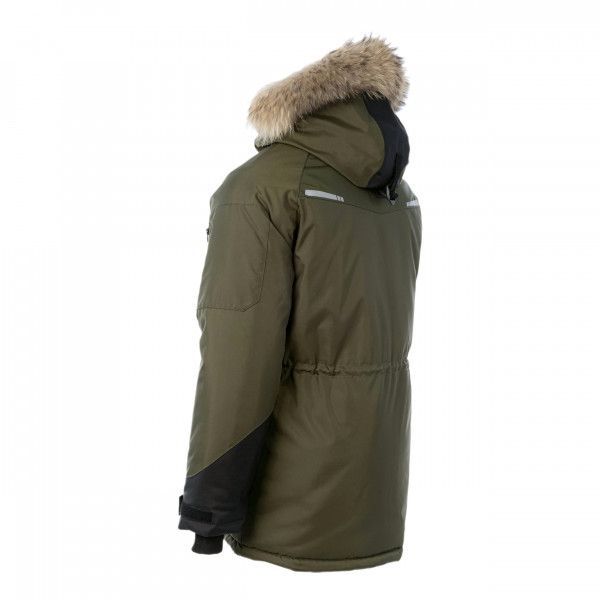 Куртка имеет удлинённый крой. Двухзамковая молния прикрыта двойной ветрозащитной планкой. Капюшон тёплый и глубокий, рассчитан на ношение каски. За ненадобностью его можно отстегнуть. Меховая опушка дополнительно защитит от метелей и сильных ветров. Также от продувания защищают высокий воротник, утяжка в талии и внутренние трикотажные манжеты. По низу рукавов расположены регулировки патами на липучке.