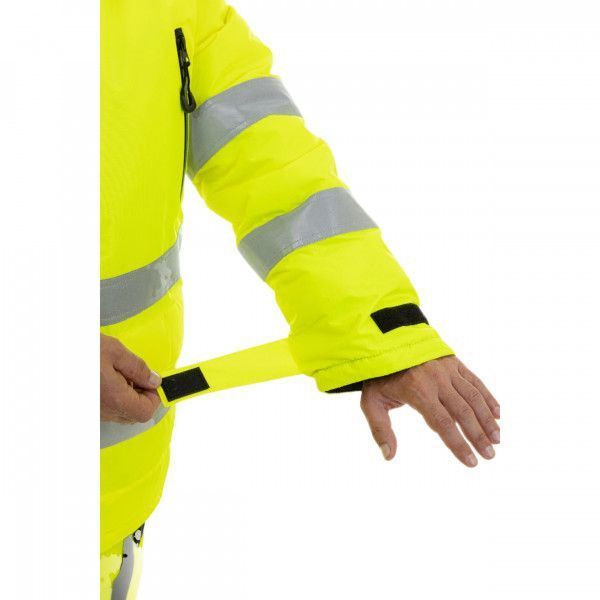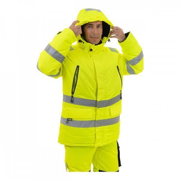 Куртка имеет флуоресцентный цвет. Для обеспечения отличной видимости по корпусу, рукавам, плечам и капюшону размещены ленты с высоким коэффициентом отражения.
