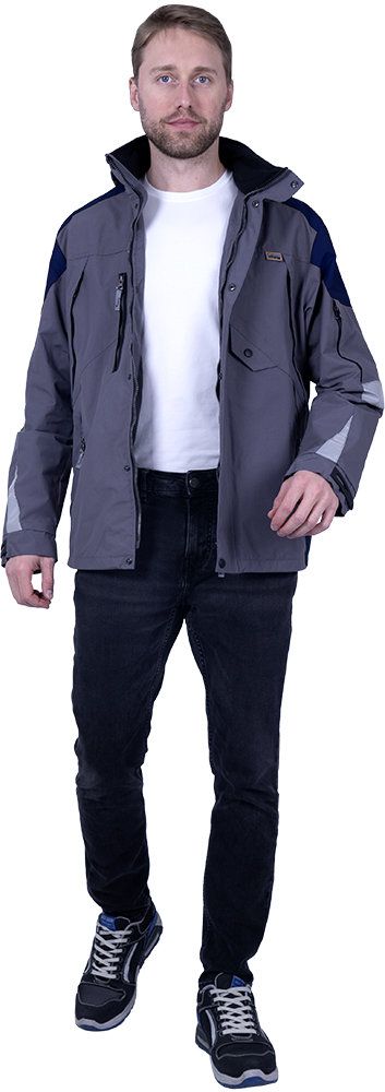 Куртка-штормовка мужская летняя "Респект" серый/синий (ЧЗ)