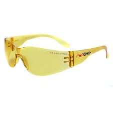Очки легкие современные незапотевающие универсального применения для всех видов работ с увеличенным панорамным обзором, защитное стекло-светофильтр (градационный шифр 2-1,2) янтарного цвета  из оптически прозрачного PC super с твердым покрытием от истирания и царапания, с внутренним покрытием от запотевания. Светофильтр янтарного цвета повышает контрастность и снижает утомление глаз при продолжительной работе (более 3 часов) в условиях плохой видимости (туман, дождь, снег, недостаточная освещенность), при искусственном освещении в цехах и на пром.площадках; обладает отличной цветопередачей. Устойчивы к растворам химических кислот и щелочей. Регулировка  угла  наклона стекла и  длины заушника.  Мягкий носоупор гарантирует удобство ношения и отсутствие усталости. Очки предназначены для защиты глаз спереди и с боков от высокоскоростных летящих частиц с низкоэнергетическим ударом, УФ-излучения при температуре окружающей среды до +55°С в производственных помещениях и на открытых площадках.