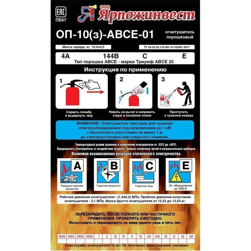 Огнетушитель ОП-10 АВСЕ (Пож040) : купить в Москве, цены в каталоге интернет-магазина «Аспект»