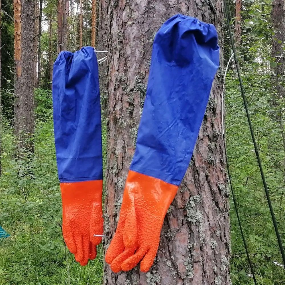 Перчатки латексные для рыбообработки с дополнительной защитой.