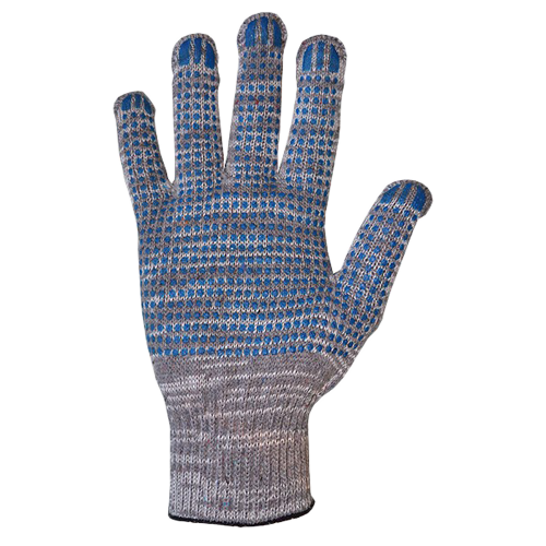 10-й класс плетения обеспечивает хлопчатобумажному материалу исключительную прочность. Изготовленные из него перчатки отличаются длительным сроком эксплуатации, не протираются и не расползаются в слабых местах. Точечное ПВХ-покрытие на ладони создает надежное сцепление с поверхностями предметов. Перчатки имеют прочный сухой и мокрый хват. Модель плотно прилегает к руке, при этом не препятствуя прохождению воздуха через нити ткани. Работать в таких перчатках комфортно даже в жару.