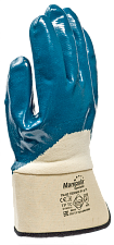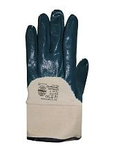 Конструкция: Манжет выполнен в виде жесткой краги из парусины, частичный облив нитрилом.