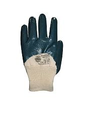 Перчатки из 100% хб, интерлок, частичное нитриловое покрытие 3/4.  Легкое акрилонитрилбутадиеновое покрытие дает  превосходную чувствительность пальцев и подвижность в работе. Надежный сухой и масляный захват. Отличная защита от истирания и разрыва. Повышенная стойкость покрытия к маслам, нефтепродуктам, кислотам и щелочам. Отличная тактильная чувствительность, отличная воздухопроницаемость, широкий диапазон применения