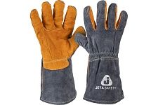 JETA SAFETY JWK1301 Ferrus Wide – защитные сварочные краги из спилковой кожи с подкладкой из х/б ткани и флиса. Надежно защищают от контактов с нагретыми поверхностями (до 400°С), искр и брызг расплавленного металла, открытого огня, конвективной теплоты и теплового излучения, истирания, проколов и порезов. Прошиты двойным кевларовым швом.