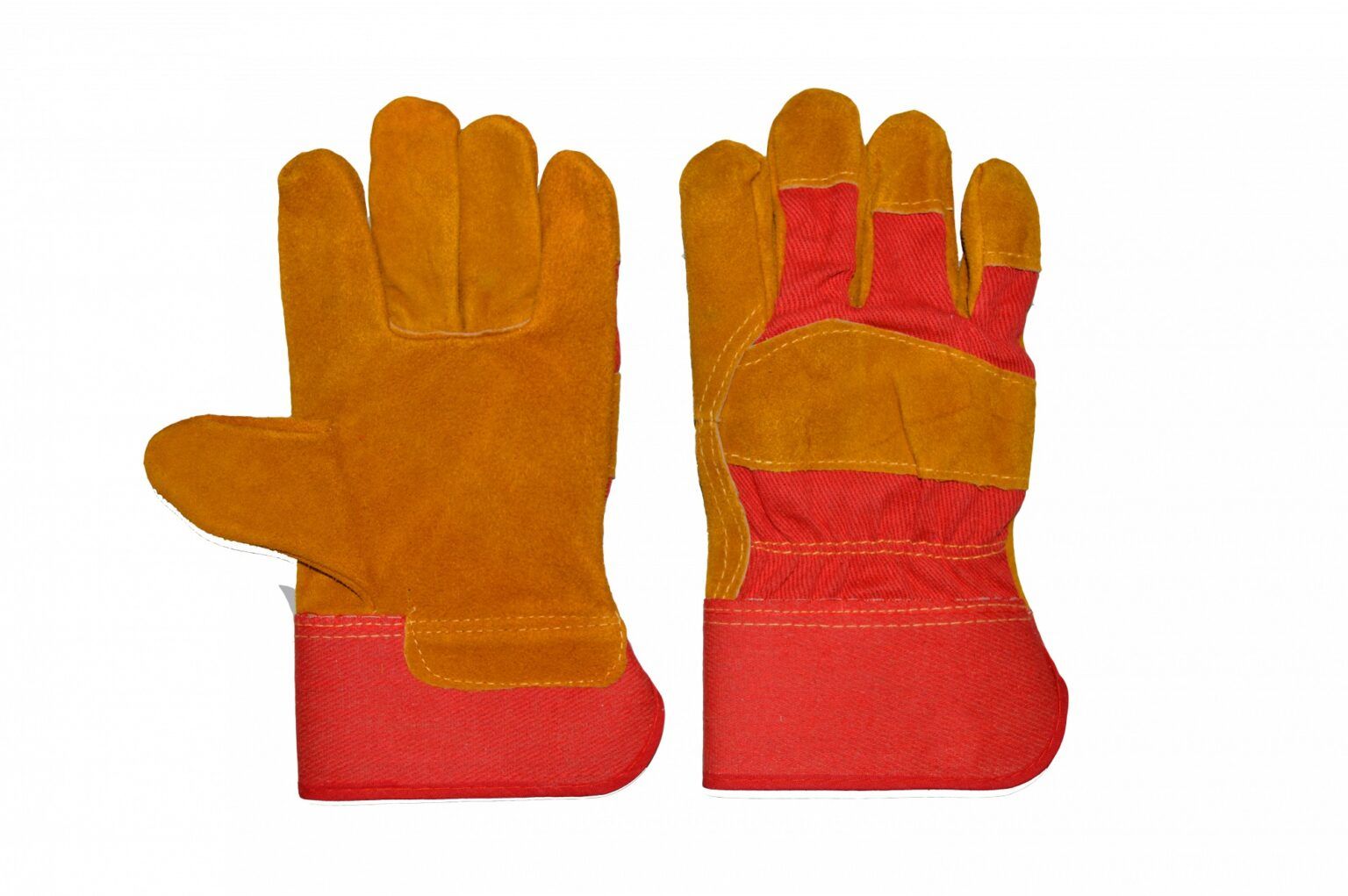 Плотные перчатки с отворотными крагами и утеплением. Хлопчатобумажная ткань комфортна для кожи, меховой слой внутри сохраняет тепло, кожевенный спилок защищает от производственных травм при работе с пиломатериалами, металлом, камнем, абразивами. Ладонная сторона усилена, на пальцах и на тыльной стороне покрытие частичное.