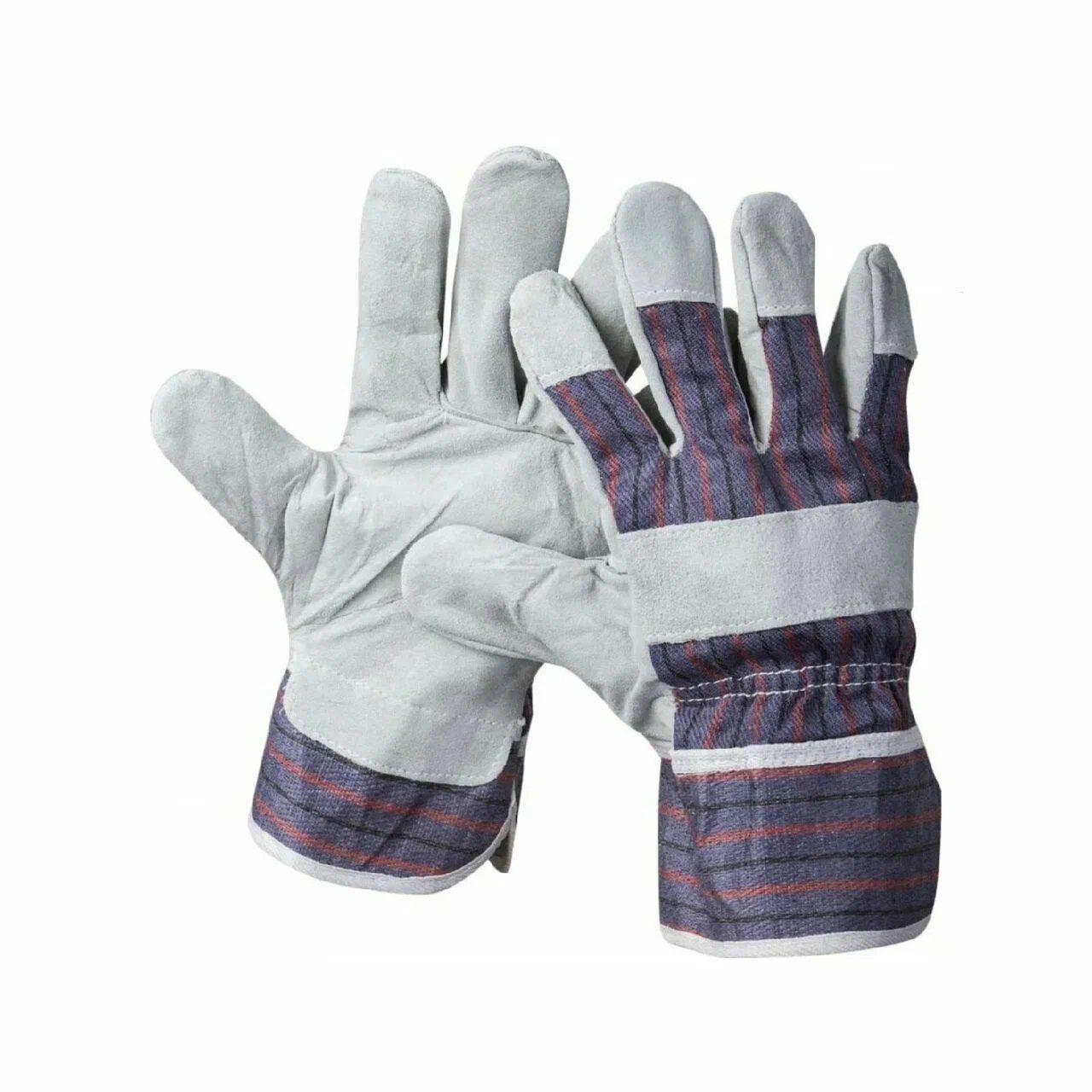 Перчатки комбинированные, выполнены из высококачественного спилка КРС и хлопчатобумажной ткани на тыльной стороне перчатки.