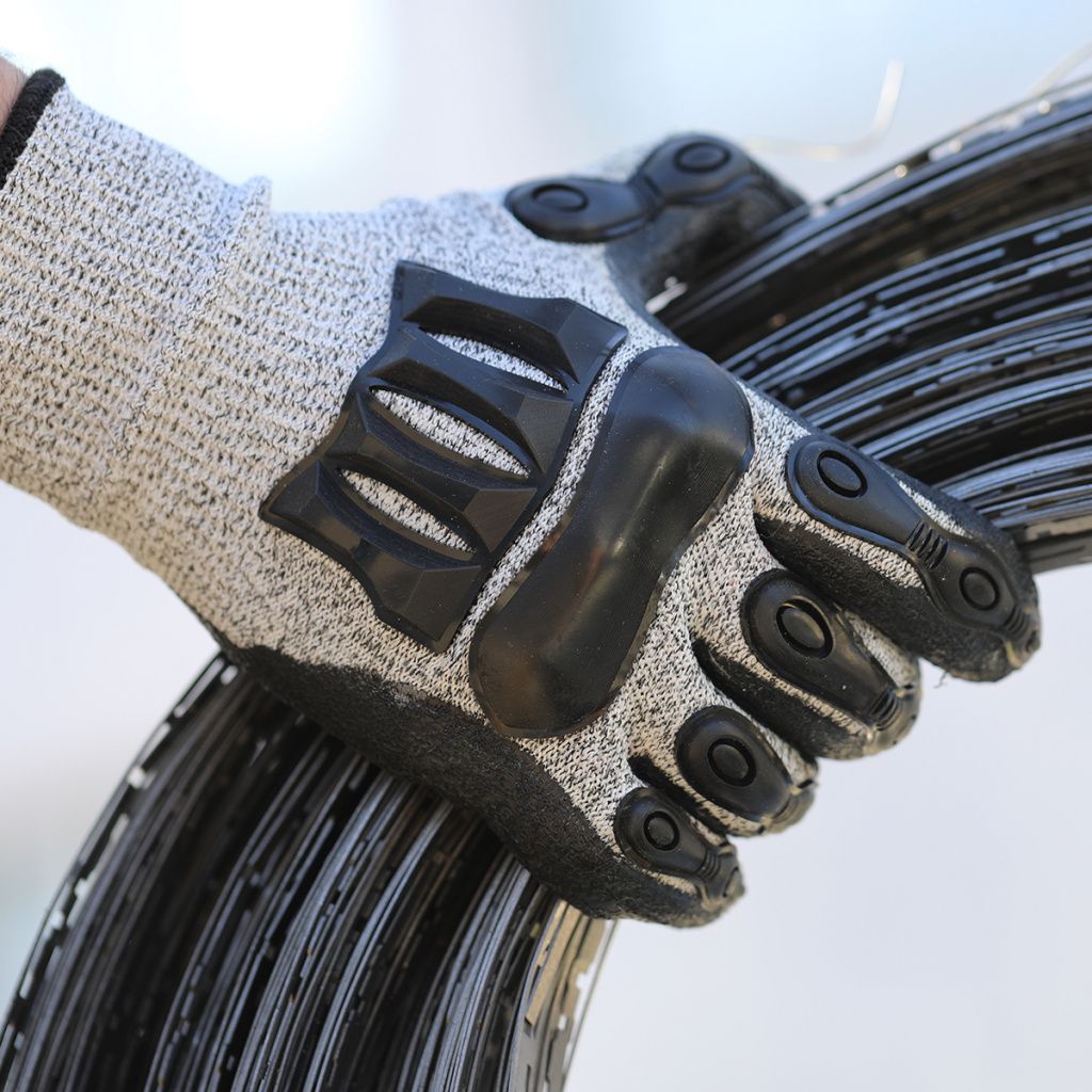 Основа перчаток состоит из СВМПЭ (сверхвысокомолекулярный полиэтилен) трикотажа 13 класса вязки. С целью усиления надежности перчаток от порезов применена технология смешивания волокон СВМПЭ с нитями из стекловолокна. Перчатки выполнены в технике платированного вязания – гладкая нить СВМПЭ размещается на внутренней, соприкасающейся с кожей стороне перчатки,  что придает дополнительный комфорт при работе. Тыльная сторона перчаток без покрытия позволяет коже дышать. Покрытие ладони и кончиков пальцев на основе натурального латекса улучшает захват и увеличивает срок эксплуатации перчаток. Противоударные накладки из полимерного (ТПР) материала обладают оптимальной плотностью и упругостью, располагаются на внешней стороне ладони, и защищают пястные кости и фаланги пальцев от ударов и травм, вызванных механическим воздействием.