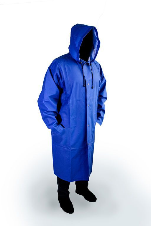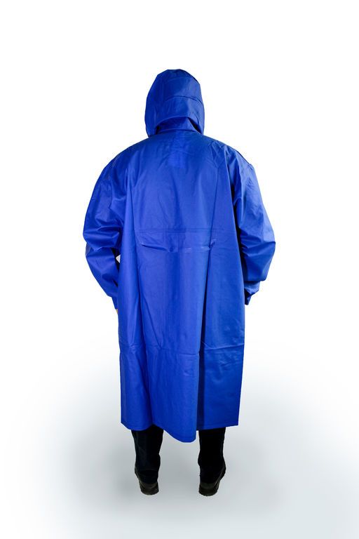 Плащ из прочного, но при этом мягкого и эластичного материала на трикотажной  основе с покрытием ПВХ плотностью 280- 350г и толщиной 0.33-0.5мм, с герметичными сварными швами. Конструкция плаща, материал, из которого он изготовлен, и сварные швы обеспечивают защиту от воды, ветра, сырой нефти и нефтепродуктов. Благодаря морозостойкости материала плащ можно носить при низких температурах. Застежка на кнопки, боковые прорезные карманы с клапаном. Под кокеткой спинки -  отверстия для вентиляции пододежного пространства, закрытые клапанами с перфорацией. Объем капюшона позволяет надевать его на каску, кнопка по низу рукава позволяет заузить рукав. Долговечный, герметичный, удобный плащ.