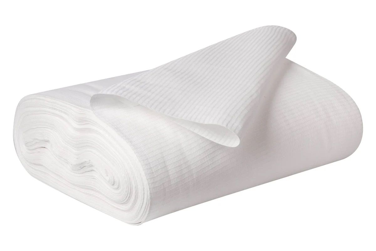 Белое вафельное полотно не оставляет ворсинок на поверхности обрабатываемых предметов, легко убирает пыль, воду, масло, жир и другие загрязнения. Оно поставляется в рулоне по 60 метров. От бобины можно отрезать необходимые по длине полоски.