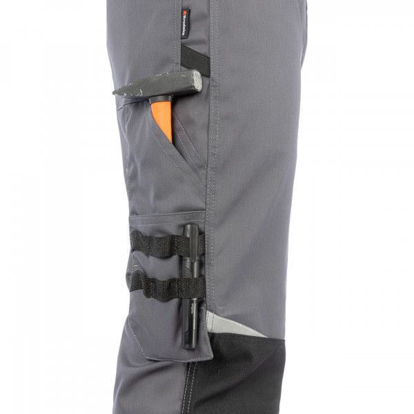 В полукомбинезоне предусмотрено 8 карманов: отделения на груди, карман на молнии под защитной планкой, 2 боковых кармана, 2 задних кармана, грузовой набедренный карман с дополнительными отделениями для инструментов и расходных материалов.