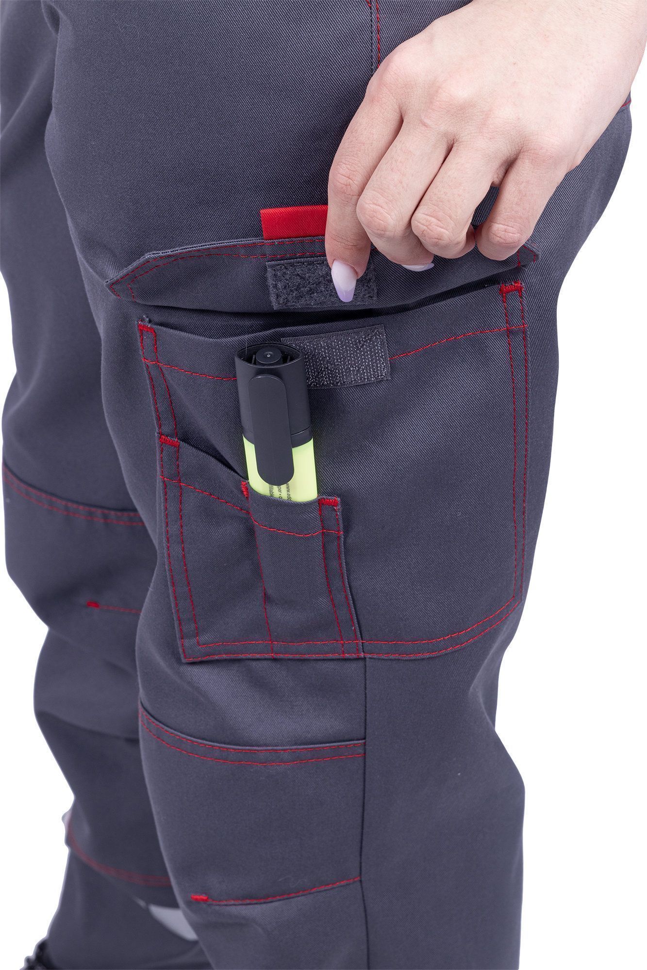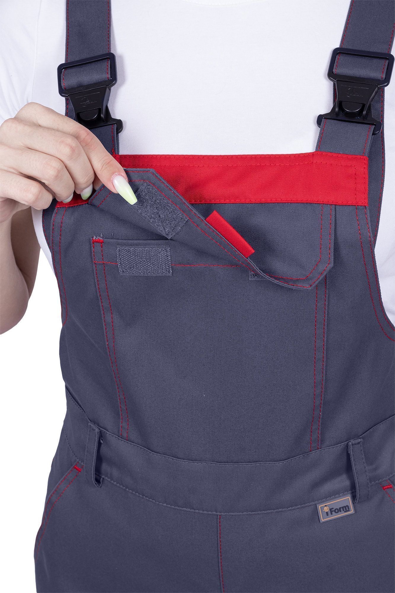 Полукомбинезон женский летний "ХАЙ-ТЕК SAFETY" серый/красный (ЧЗ)