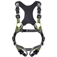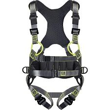 Привязь с поясом. Привязь с 3 точками крепления для защиты от падений (2 спинных, грудная), с грудной лямкой. Удлинитель страховочной точки (D-образное кольцо) на спине для удобного присоединения соединительно-амортизирующей подсистемы. Материал ремней – полиэстер. Регулировка привязи осуществляется с помощью 2 автоматических пряжек на ножных лямках, 2 пряжек на плечевых лямках и автоматической пряжки на грудной лямке. Индикатор падения. Пояс с термоформованной зоной спины, застегиваемый на широкую контактную ленту. 2 боковые точки крепления для позиционирования. 1 автоматическая пряжка, при помощи которой регулируется размер пояса. Мягкая подкладка на спине. 2 дополнительные крепежные петли.