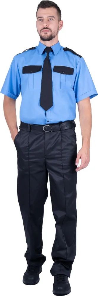Рубашка мужская охранника с коротким рукавом голубая с т.синим/черным (Руб002) : купить в Москве, цены в каталоге интернет-магазина «Аспект»