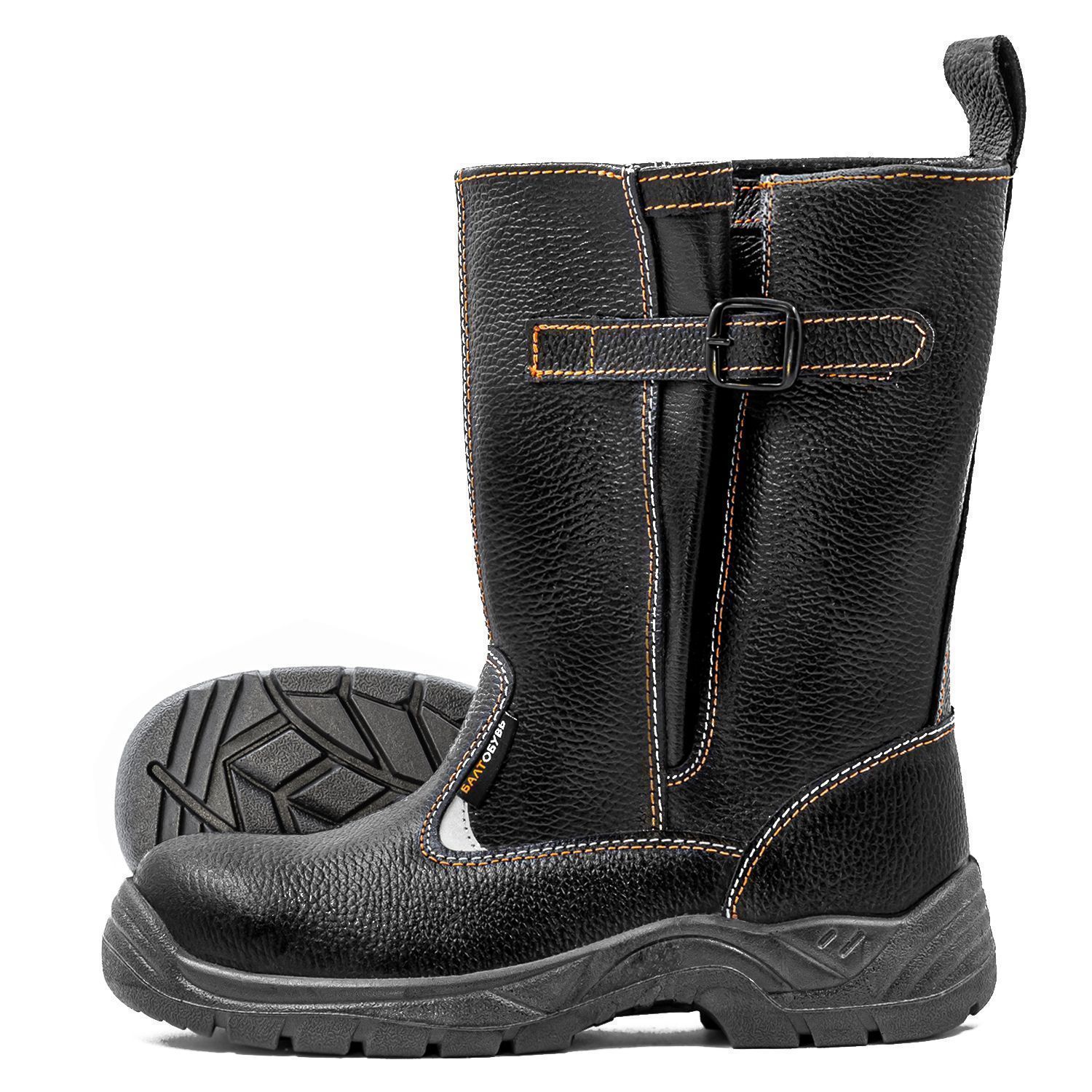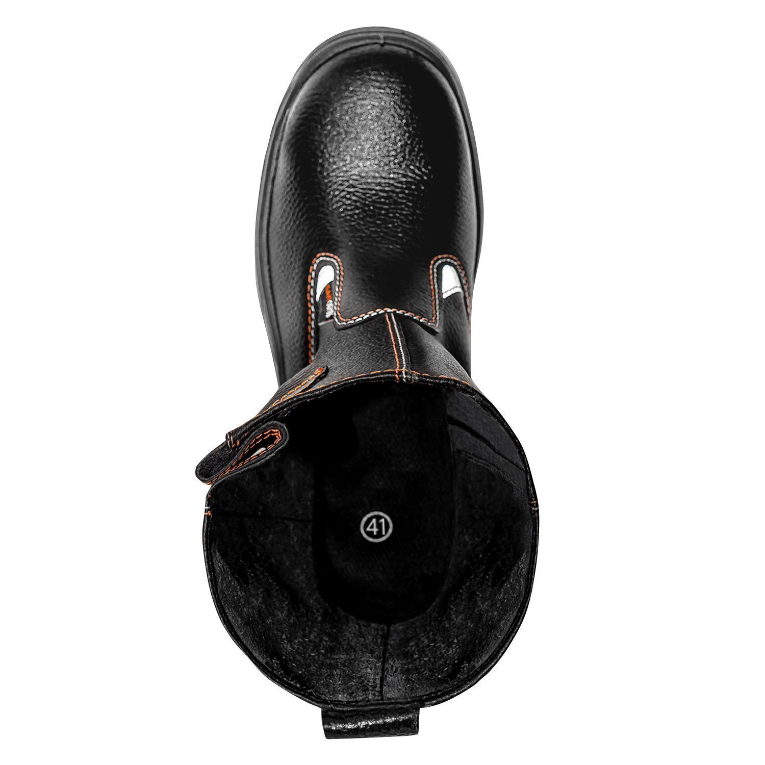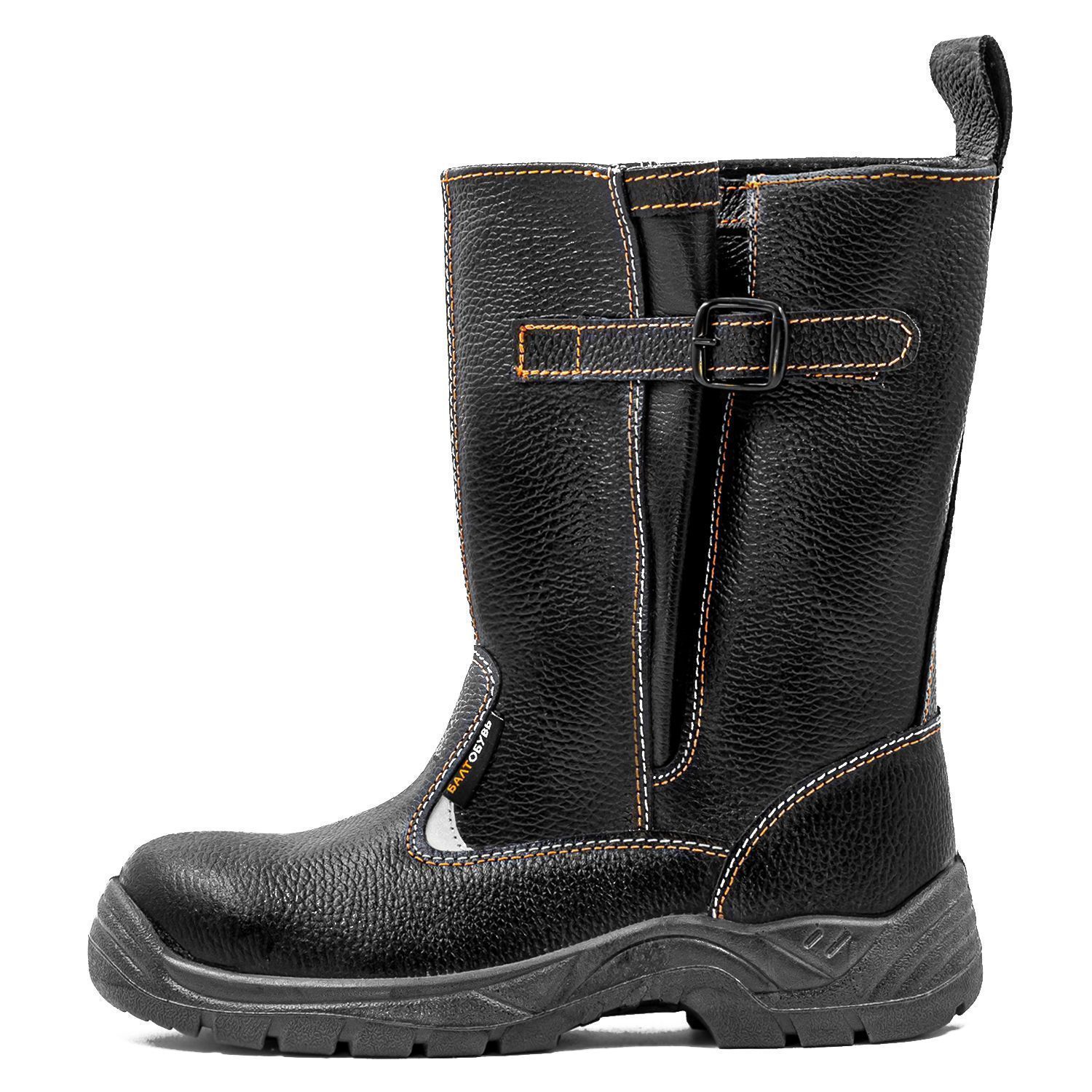 Защитные сапоги на двухслойной ПУ (полиуретановой)/нитрильной подошве изготовлены из натуральной юфтевой кожи устойчивой к воздействию агрессивных внешних факторов. Носок защищен композитным подноском с ударной нагрузкой до 200 Дж. Подошва изготовлена литьевым методом, устойчива к воздействию кислотно-щелочных веществ (до 20%), масло-бензольных соединений и нефтепродуктов. Рабочая температура эксплуатации ботинок от -45°С до +300°С. Амортизатор в пяточной части сапога обеспечивает дополнительный комфорт для ног. Анатомическая стелька из ЭВА обеспечивает комфорт носки и снижает нагрузку на суставы ног.